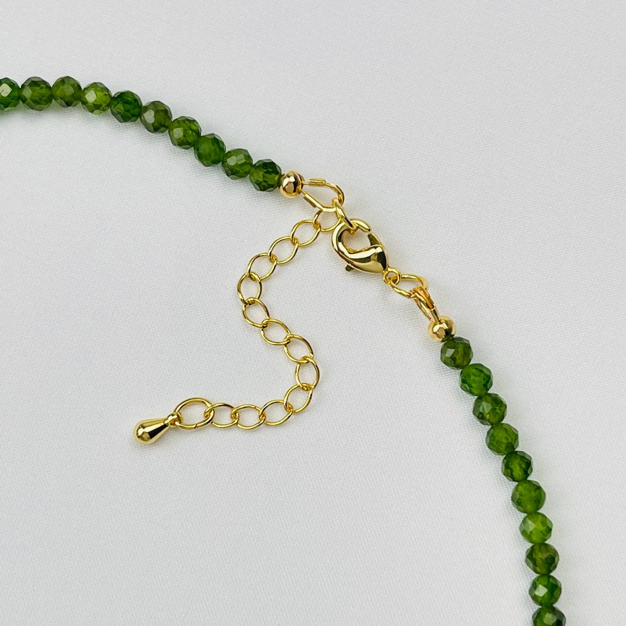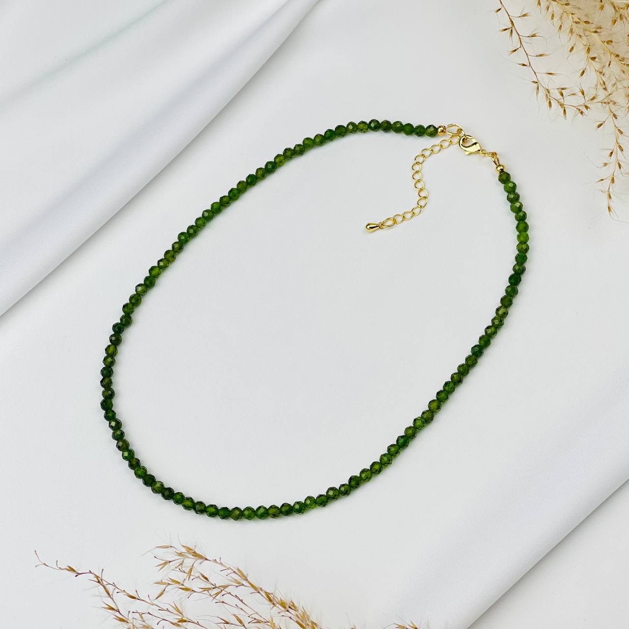 Цвет камня: Зелёный Месторождение..показать: Россия Камень: Хромдиопсид Покрытие: Золото 14К Диаметр: 4 мм Поверхность: Граненый Производитель: Радуга Самоцветов (Россия) Тип замка: Карабин с цепочкой: Россия