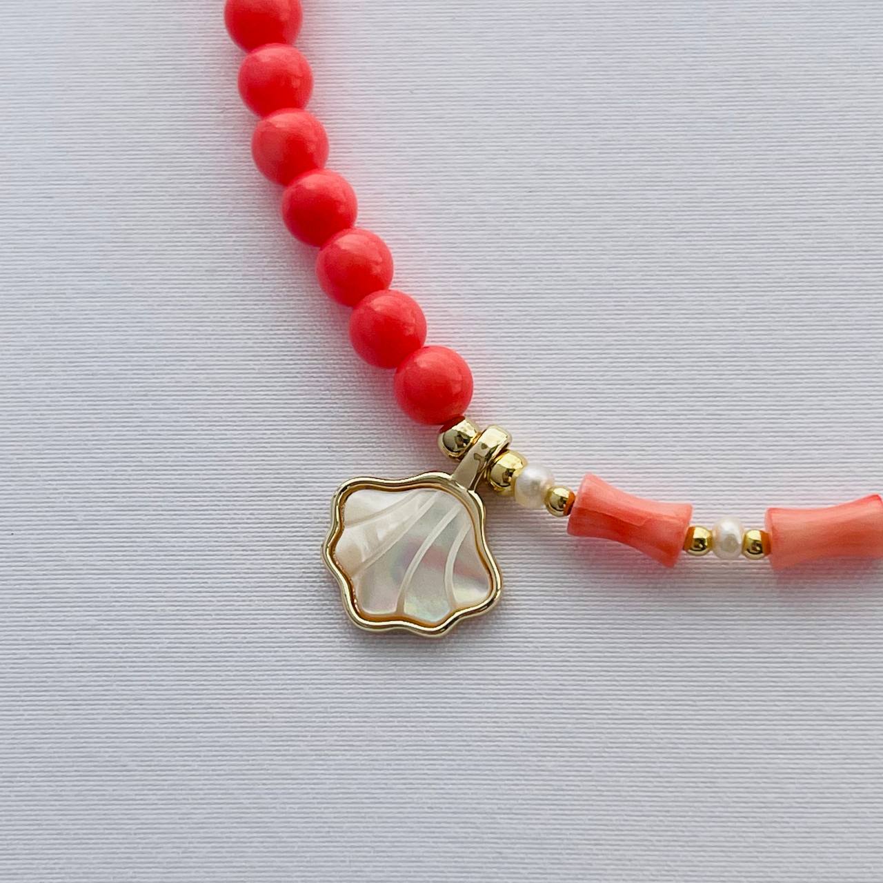 Радуга Самоцветов Бусы из Коралла и Жемчуга с подвеской