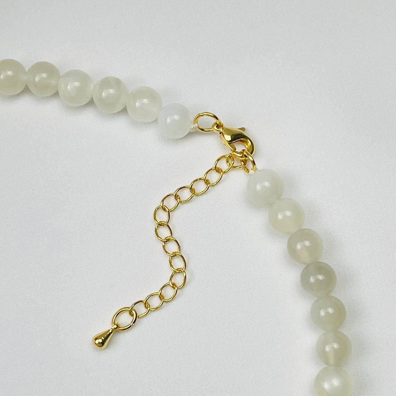 Радуга Самоцветов Бусы из Лунного камня со вставкой "Клевер"