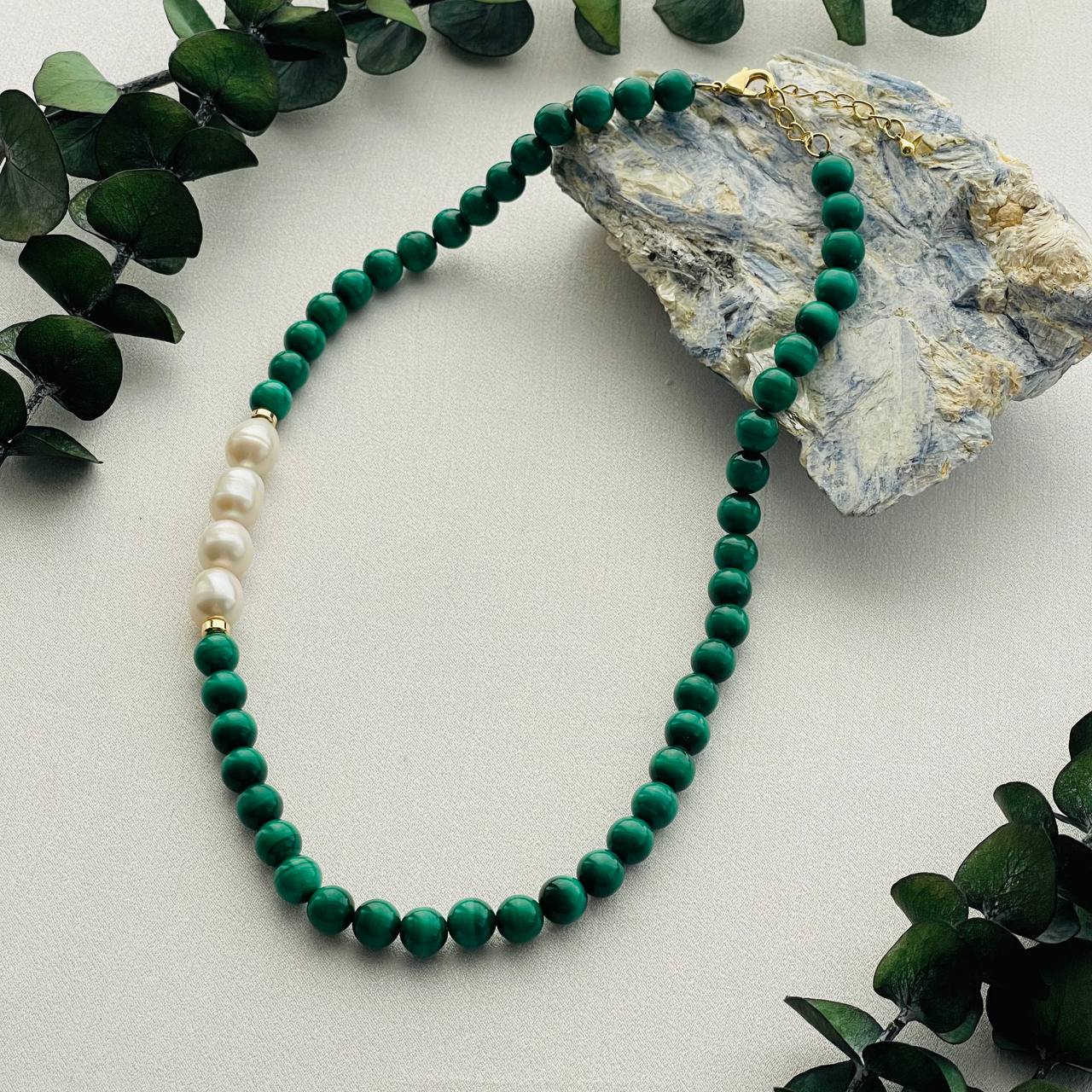 Радуга Самоцветов Колье из Малахита с Жемчугом