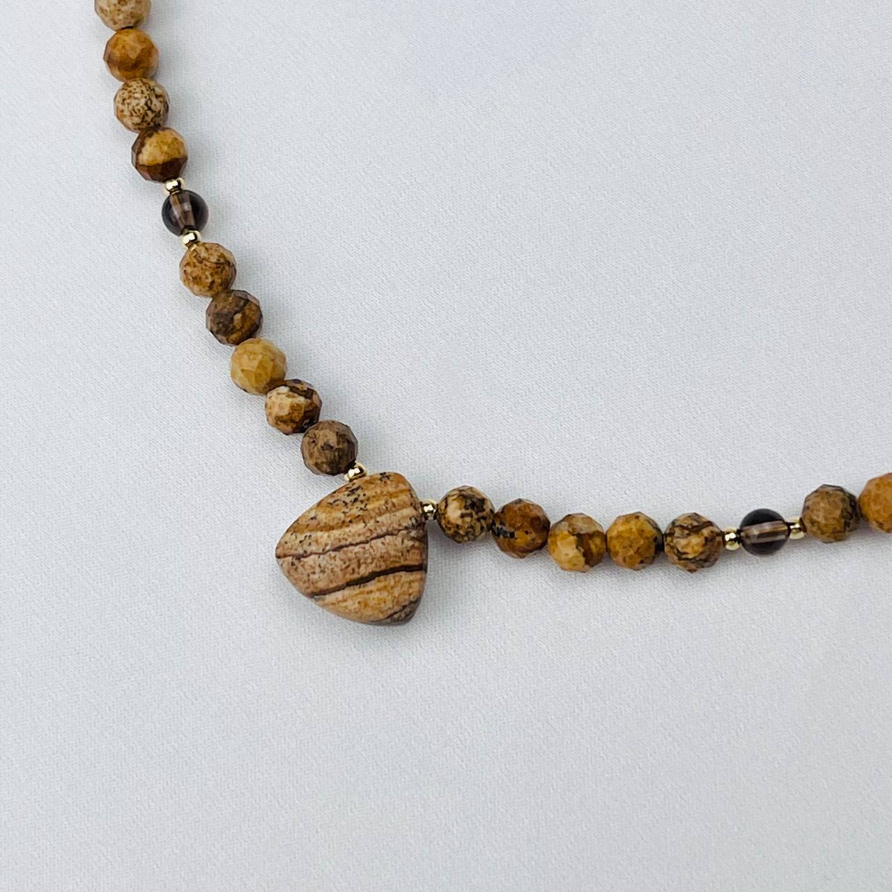 Радуга Самоцветов Бусы из песочной Яшмы и Раухтопаза с кулоном