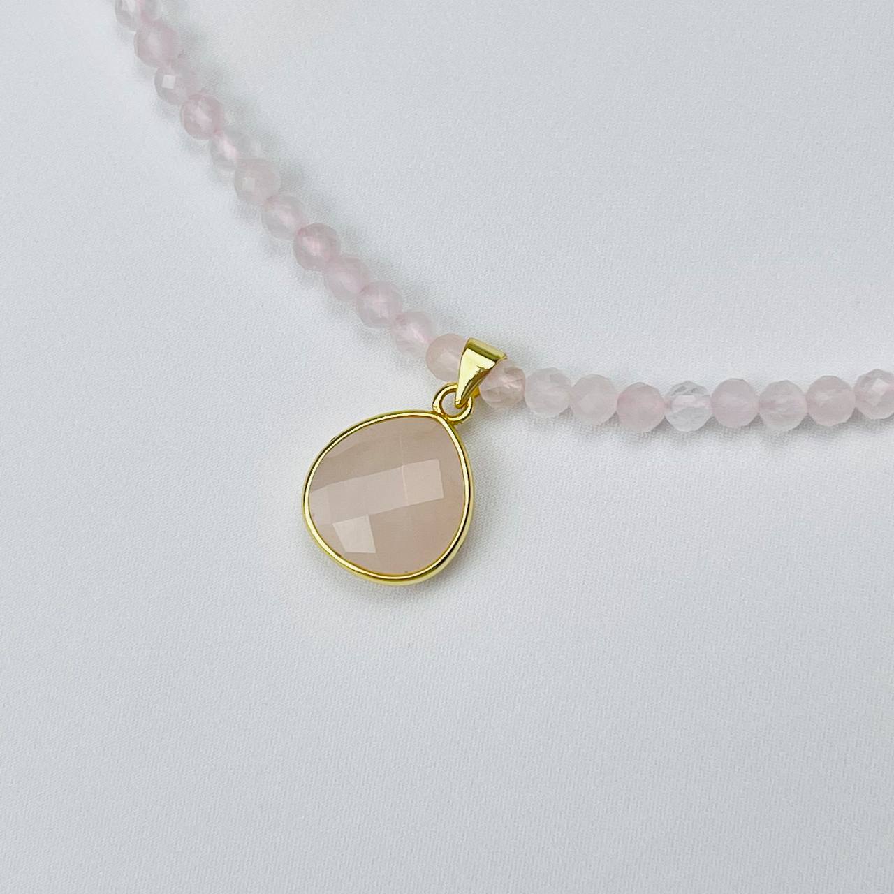 Радуга Самоцветов Бусы из Розового кварца с кулоном