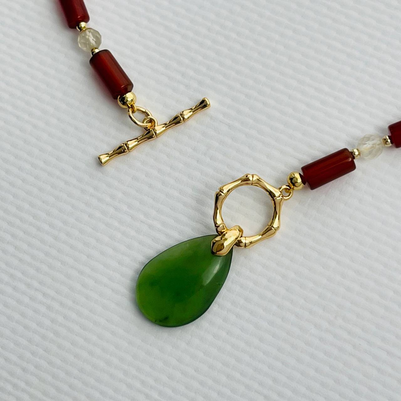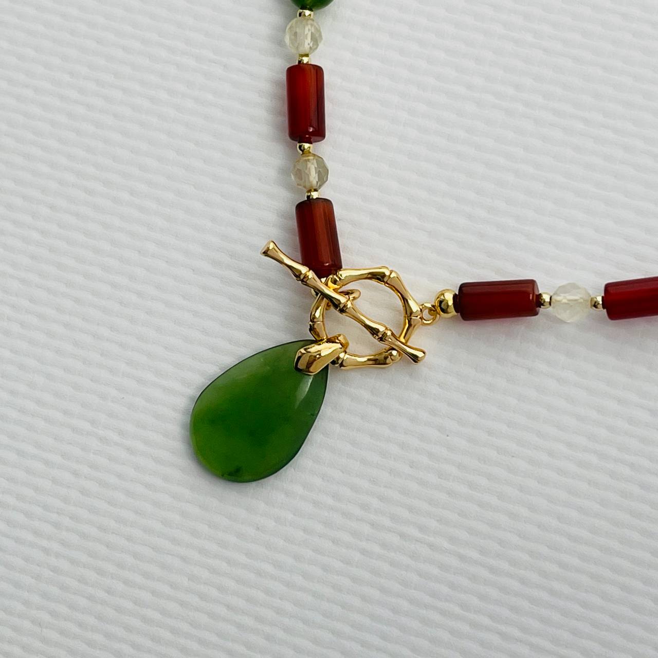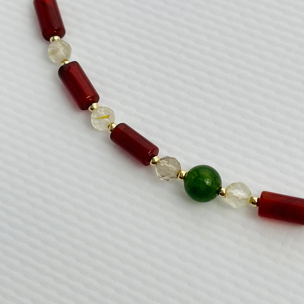 Радуга Самоцветов Колье из Сердолика, Рутилового кварца и Нефрита
