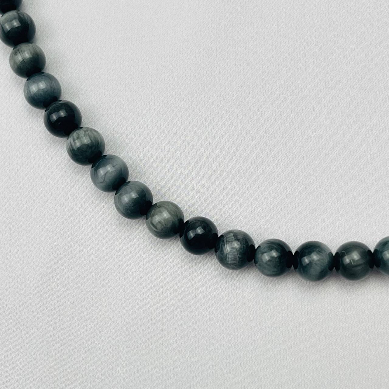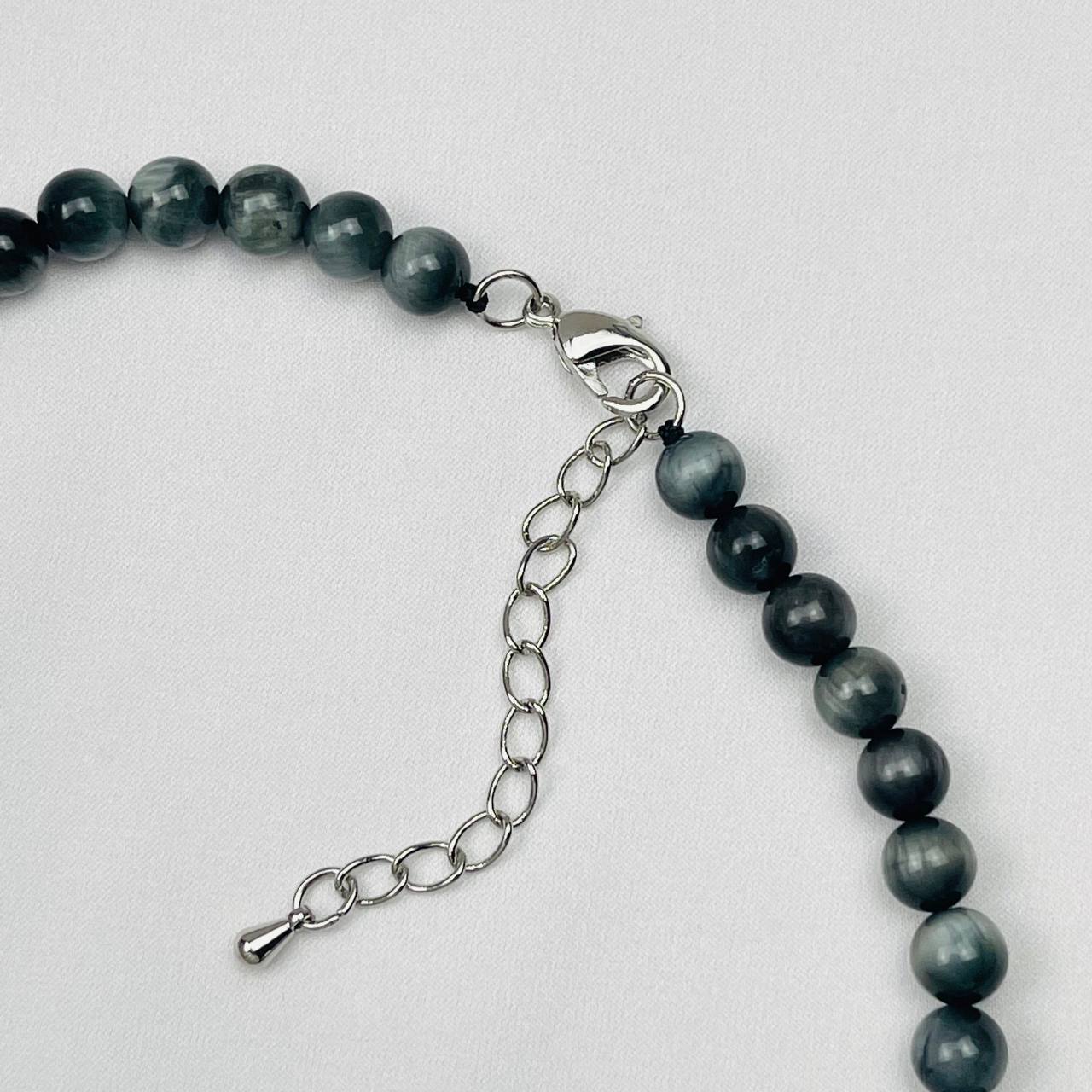 Цвет камня: Серый Месторождение: ..показатьАфрика Камень: Соколиный глаз Покрытие: Бижутерный сплав Диаметр: 6 мм Поверхность: Гладкий Производитель: Радуга Самоцветов (Россия) Тип замка: Карабин с цепочкойАфрика