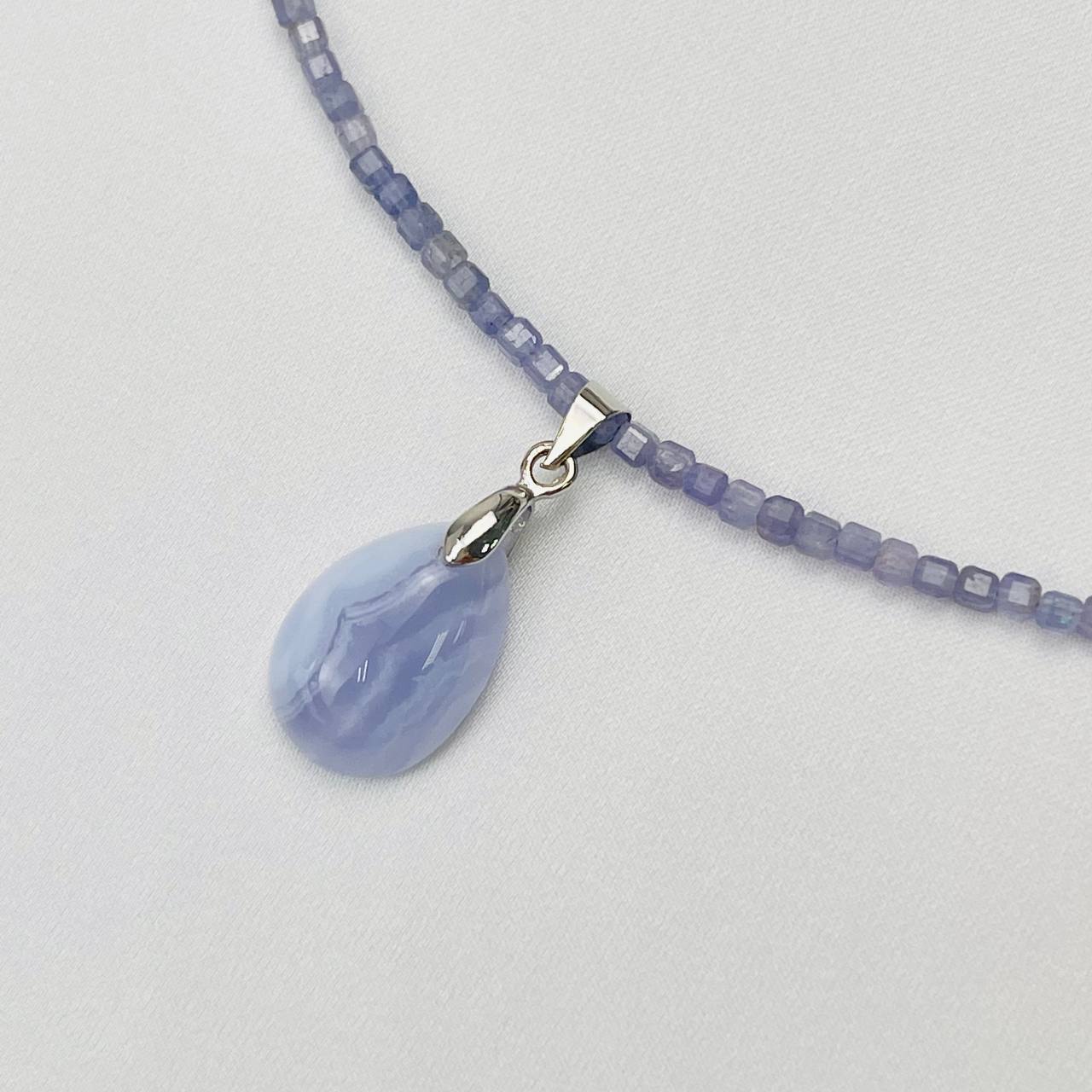 Радуга Самоцветов Чокер из Танзанита с кулоном из Агата
