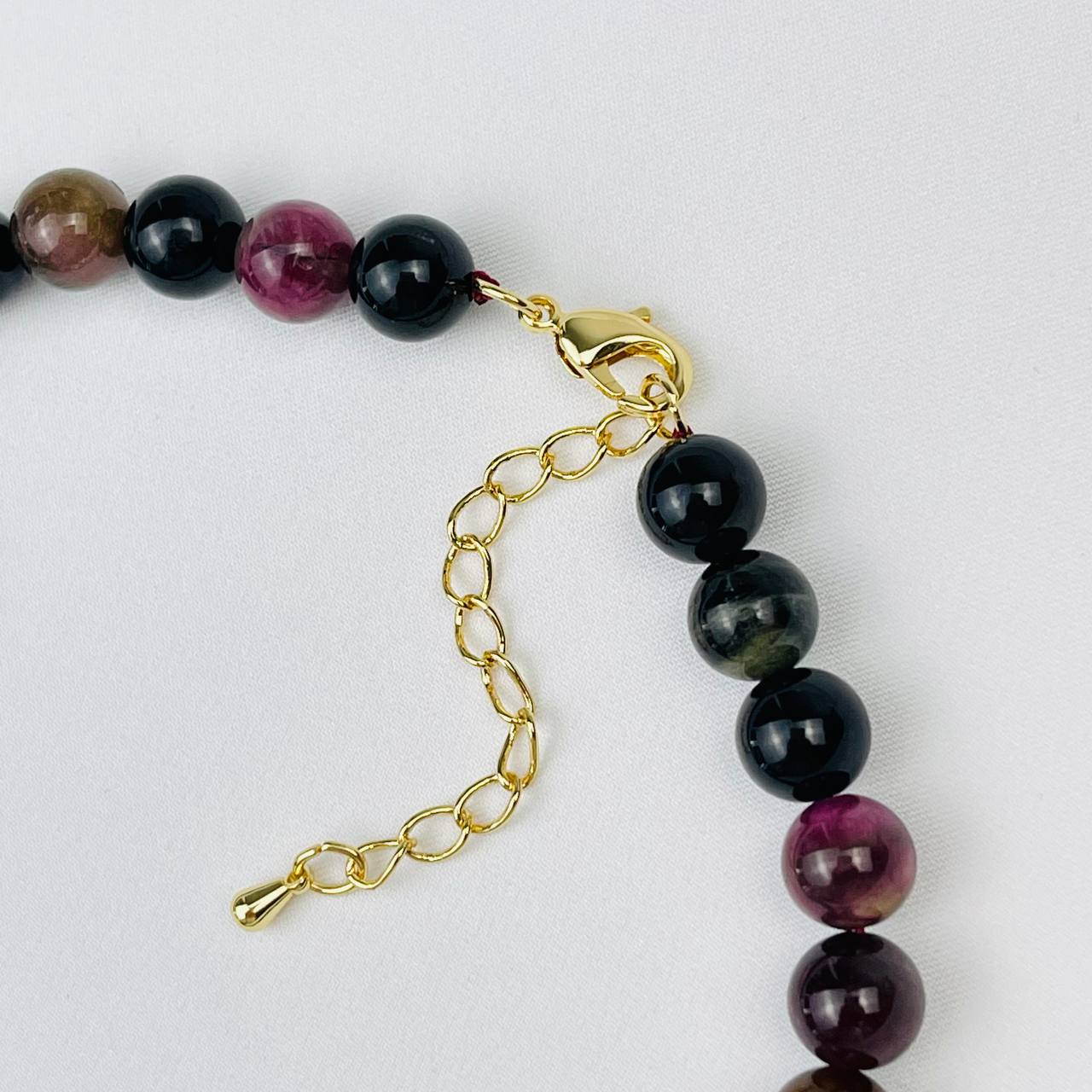Цвет камня: Миксовый Месторождени..показатье: Бразилия Камень: Турмалин Покрытие: Золото 14К Диаметр: 8,5 мм Поверхность: Гладкий Производитель: Радуга Самоцветов (Россия) Тип замка: Карабин с цепочкойе: Бразилия