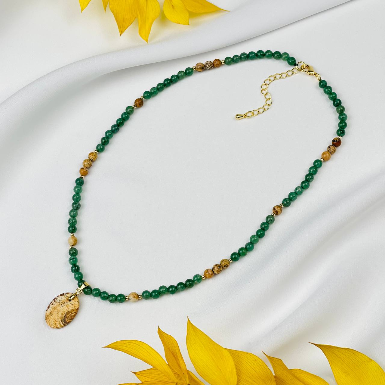 Радуга Самоцветов Колье из зеленого Авантюрина и песочной Яшмы