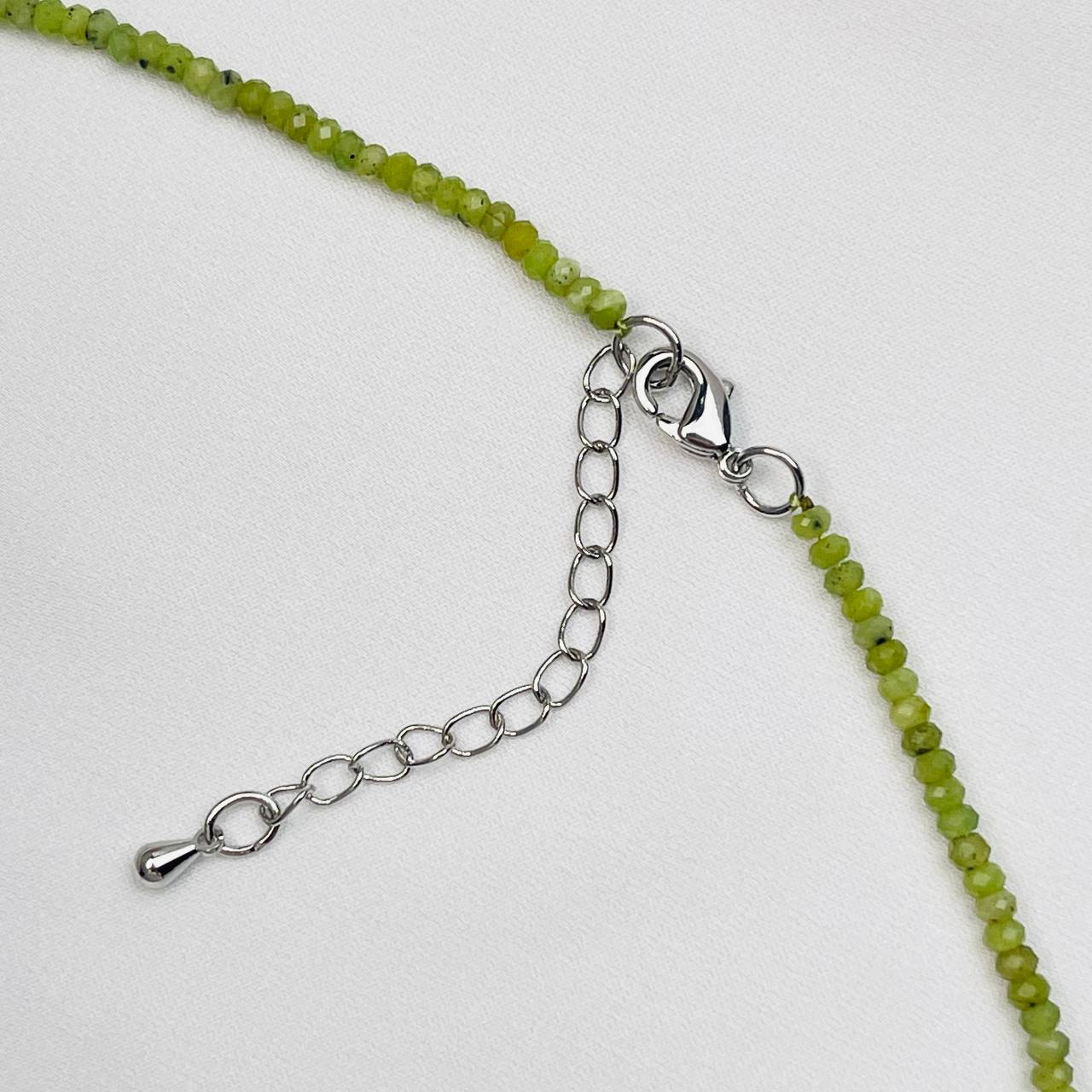 Цвет камня: Зелёный Месторождение..показать: Канада Камень: Серпентинит (Змеевик) Покрытие: Бижутерный сплав Поверхность: Граненый Размер: 1,5х2,5 мм Производитель: Радуга Самоцветов (Россия) Тип замка: Карабин с цепочкой: Канада