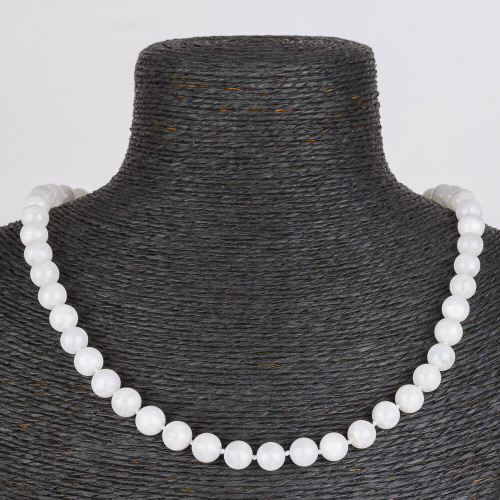 Камень: Лунный камень Диаметр: 9 ..показатьмм Вязка: с узелком Поверхность: Гладкий Производитель: Радуга Самоцветов (Россия) Тип замка: Карабин с цепочкоймм