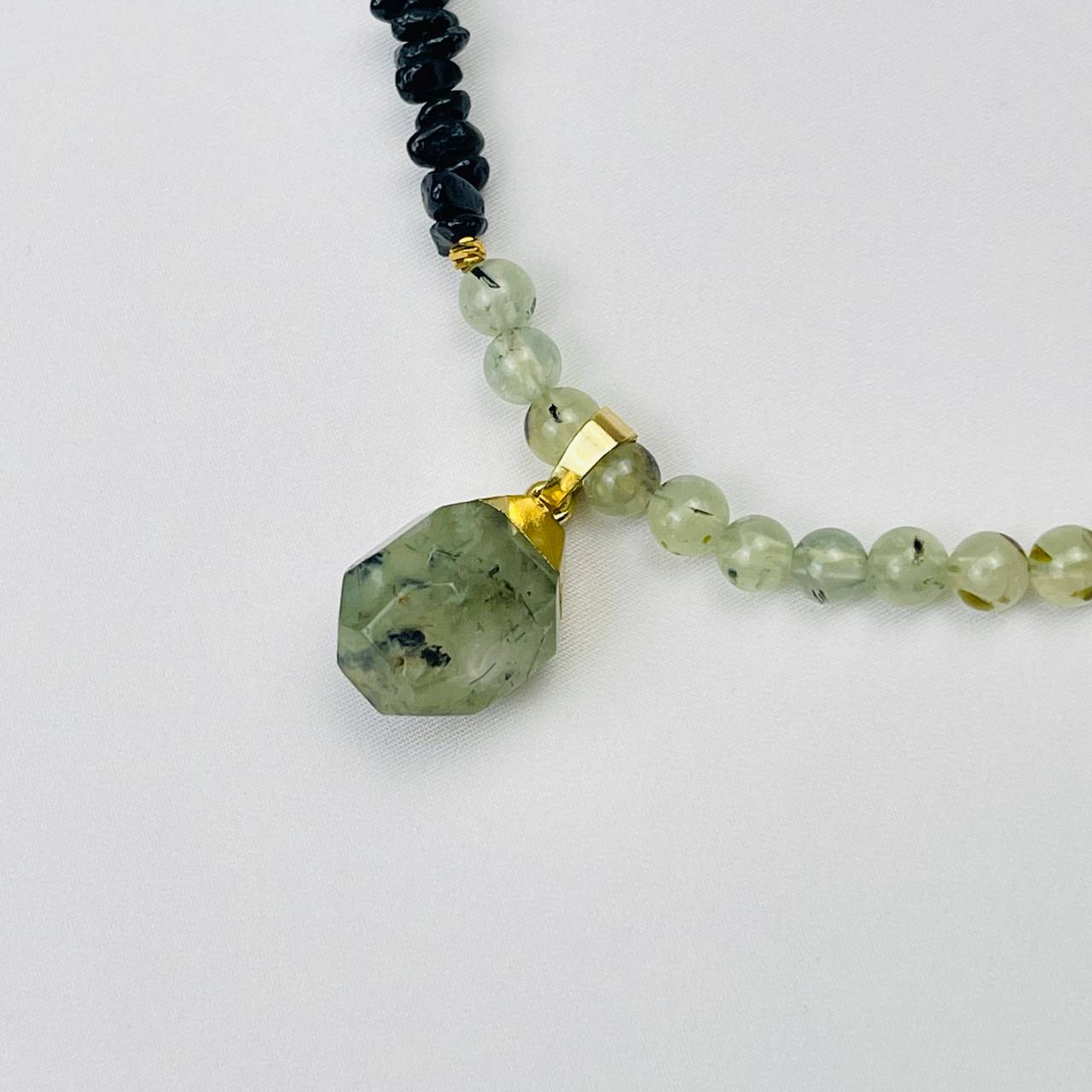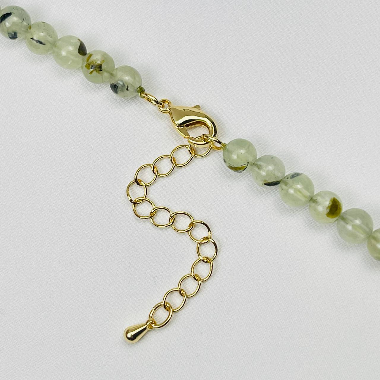 Радуга Самоцветов Бусы с кулоном из Пренита с включением эпидота и Турмалина
