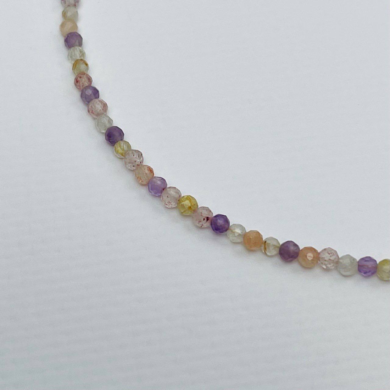 Радуга Самоцветов Бусы с подвеской из Рутилового кварца, Аметиста и Клубничного кварца