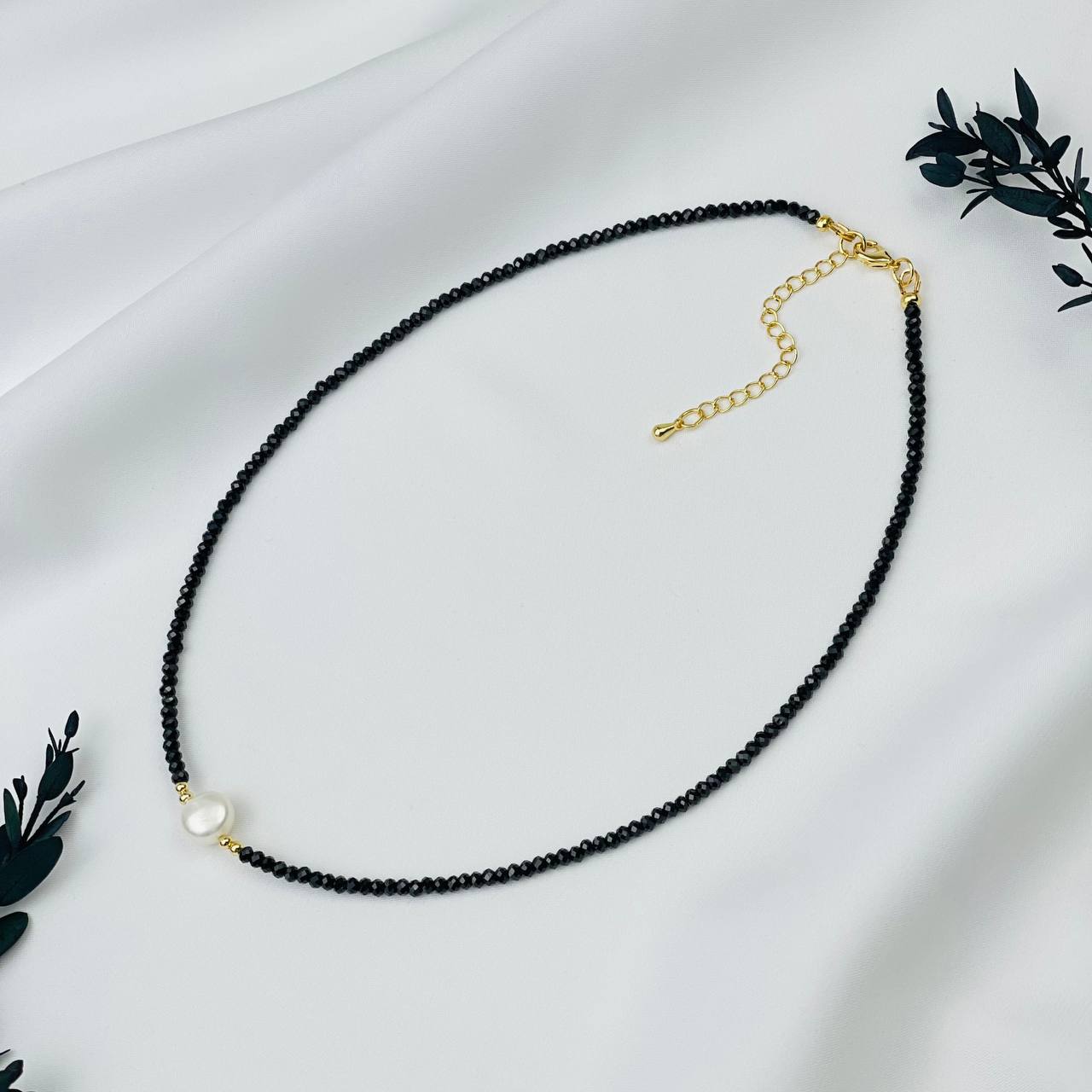 Радуга Самоцветов Чокер из черной Шпинели и Жемчуга