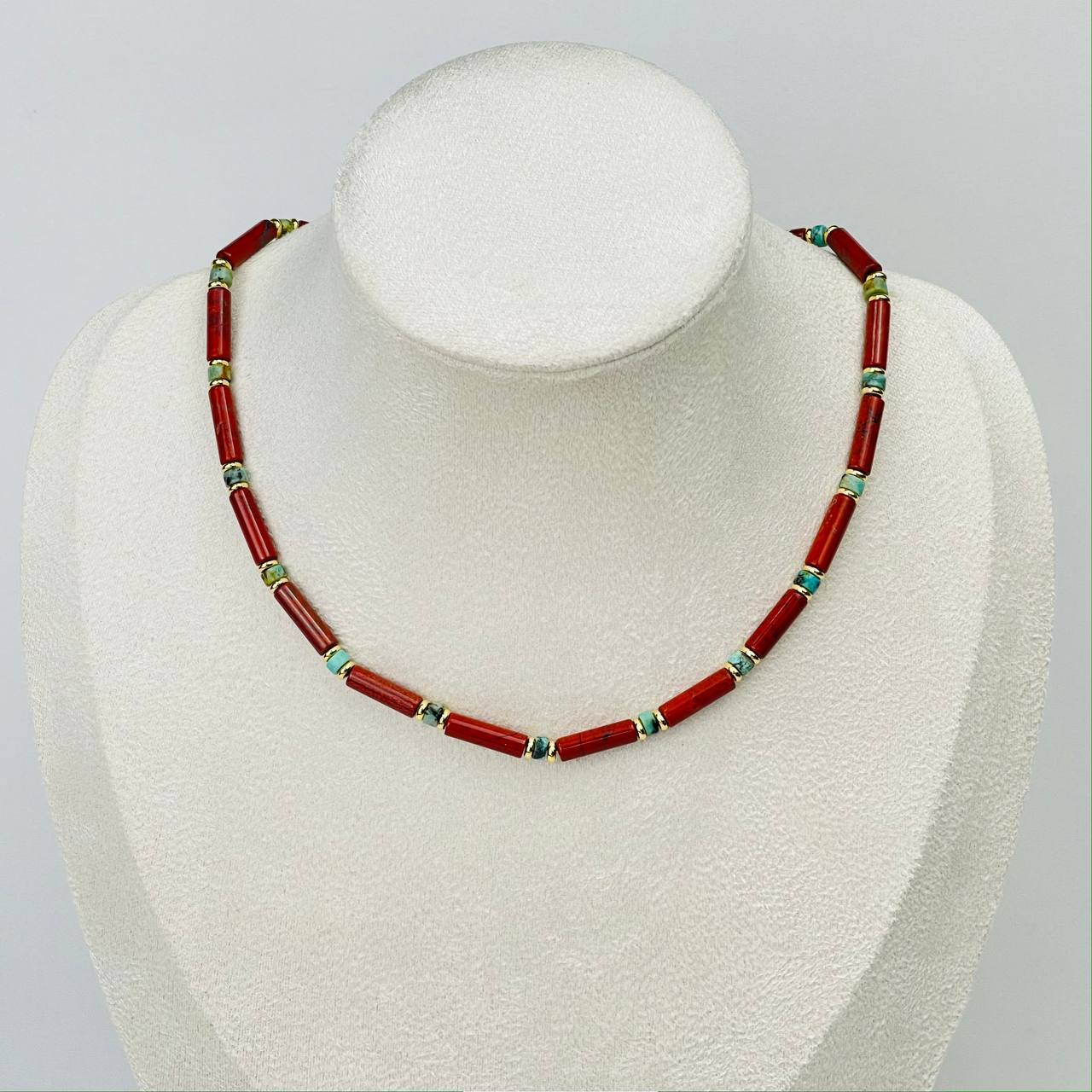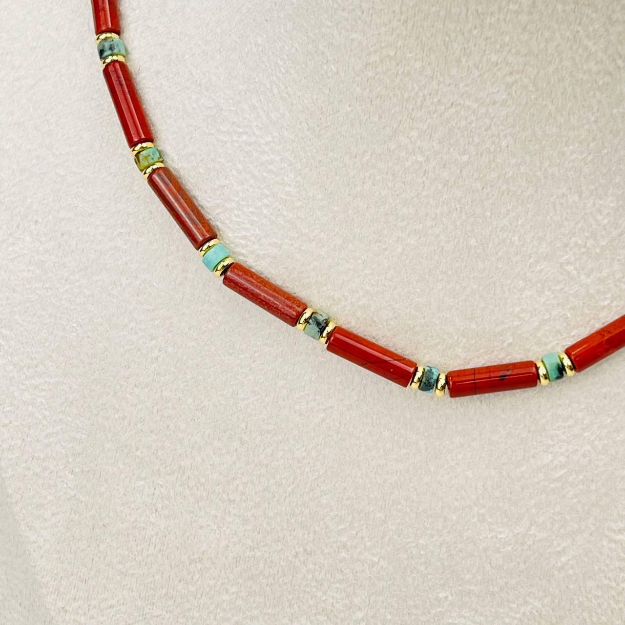 Радуга Самоцветов Чокер из кирпичной Яшмы и Хризоколлы