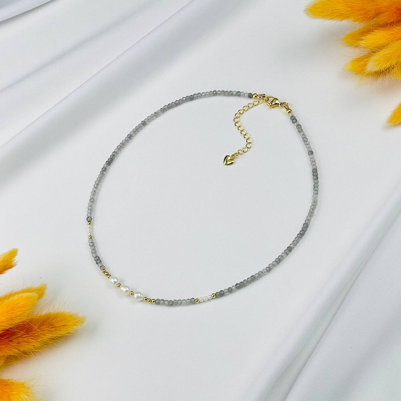 Радуга Самоцветов Чокер из Лабрадора и Жемчуга