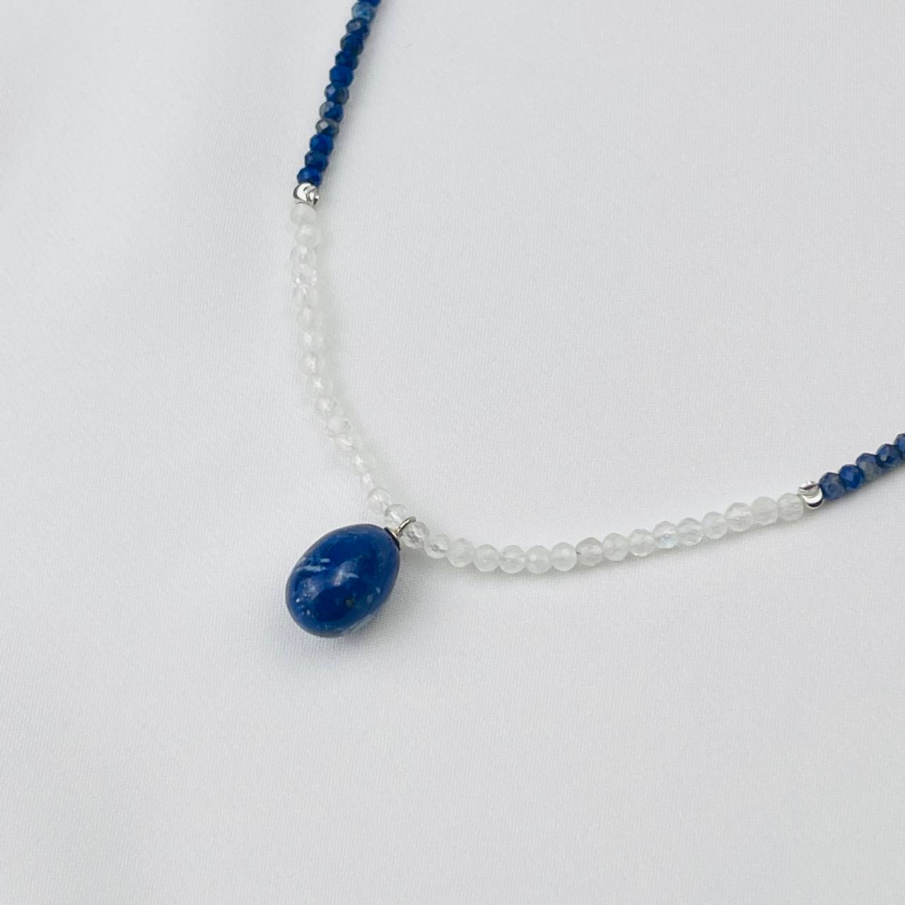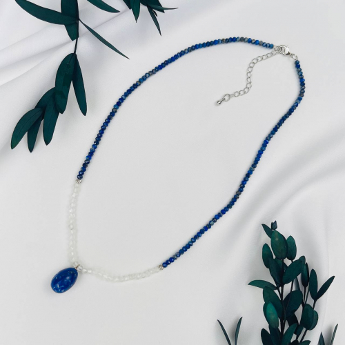 Радуга Самоцветов Чокер из Лазурита и Лунного камня с кулоном