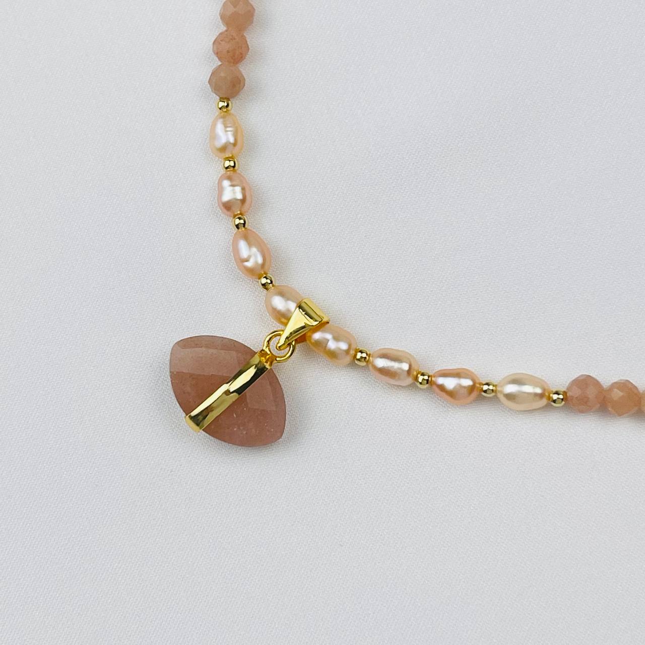 Радуга Самоцветов Чокер из Лунного камня и Жемчуга с подвеской