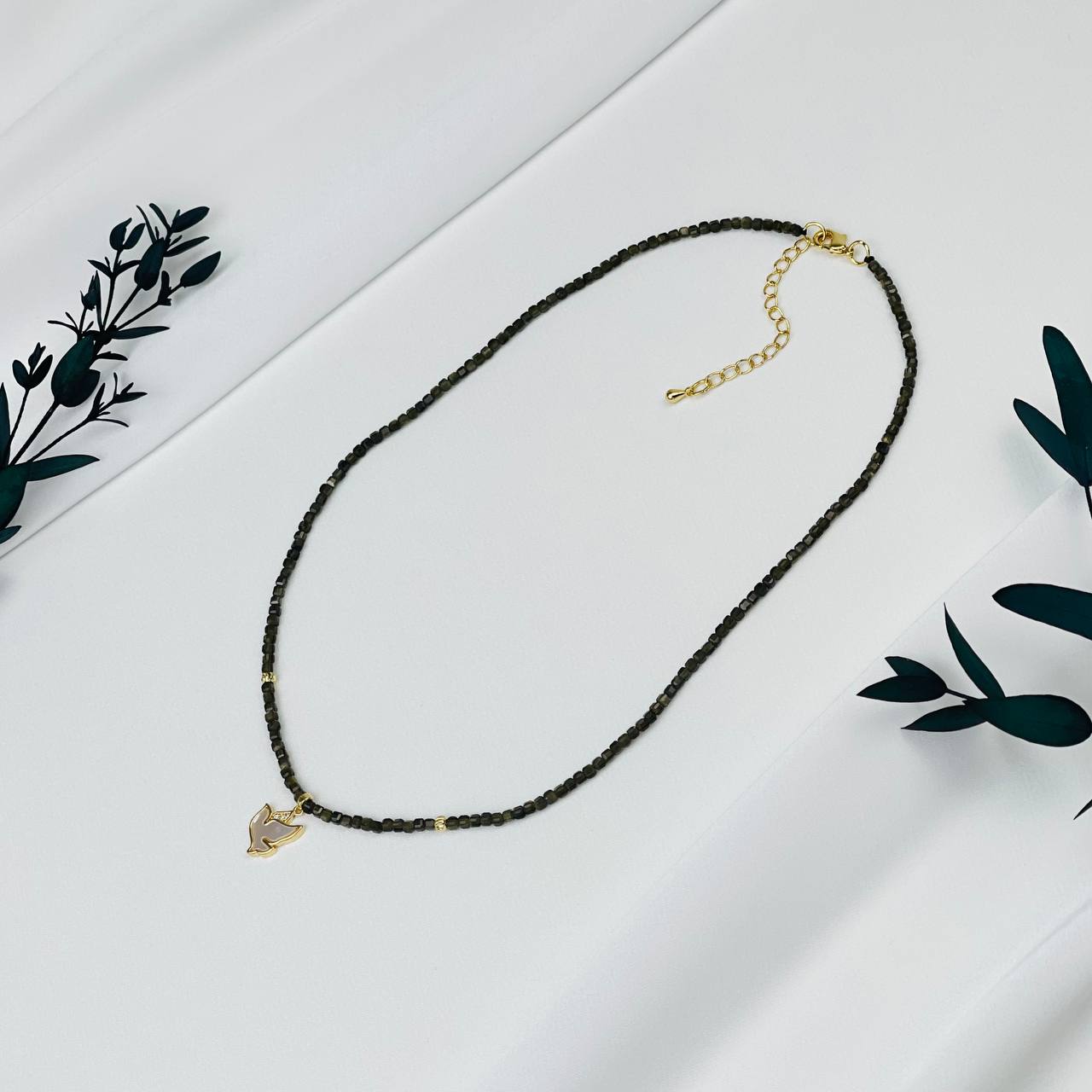 Радуга Самоцветов Чокер из Обсидиана с перламутровой подвеской