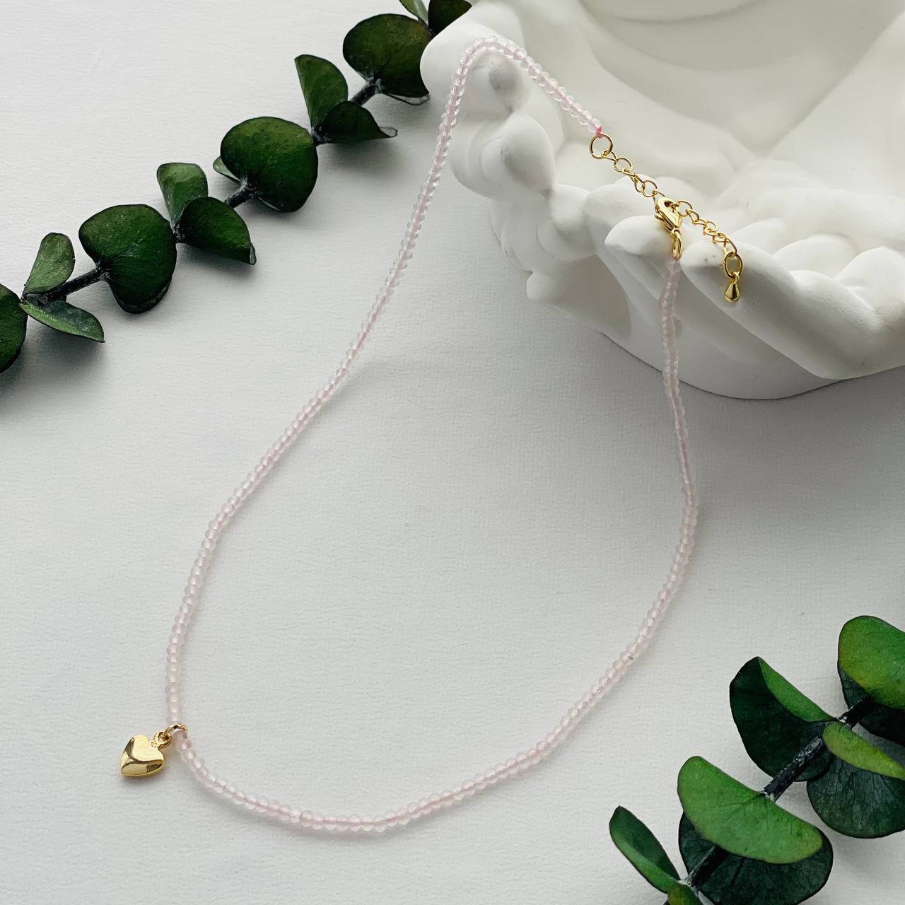 Радуга Самоцветов Чокер из Розового кварца с подвеской "Сердце"