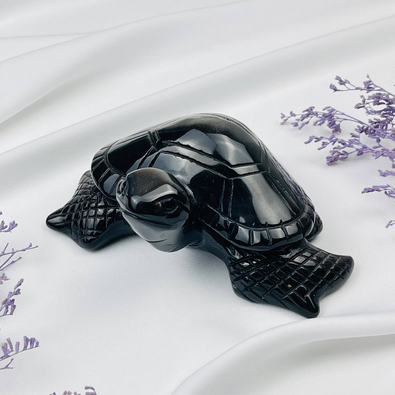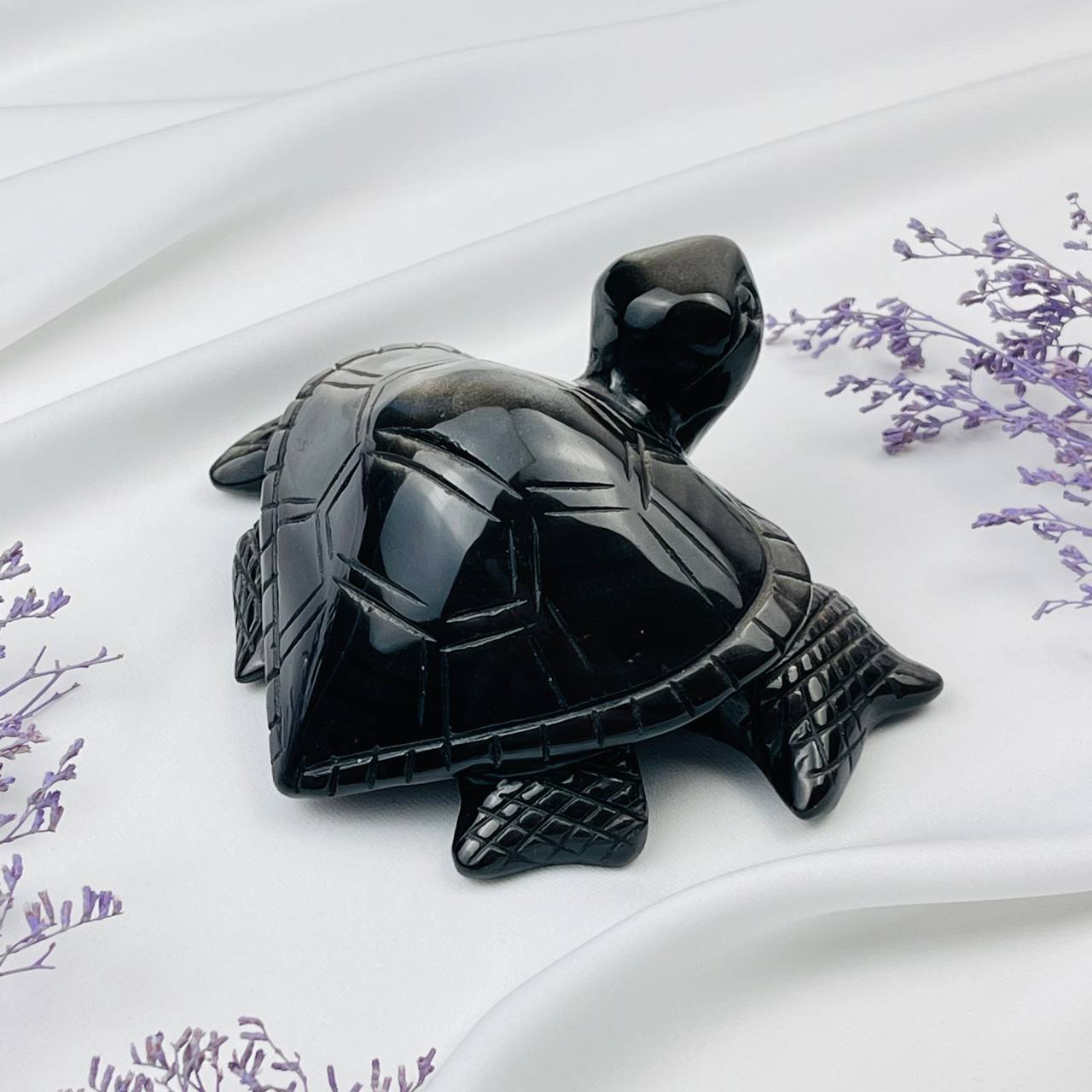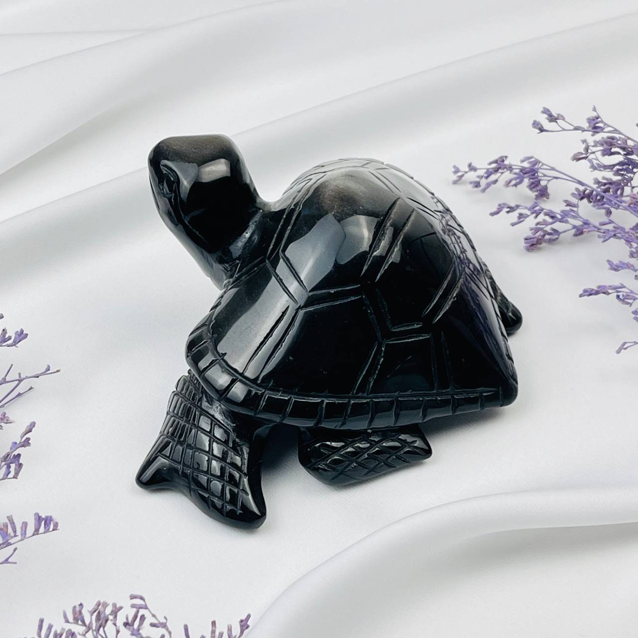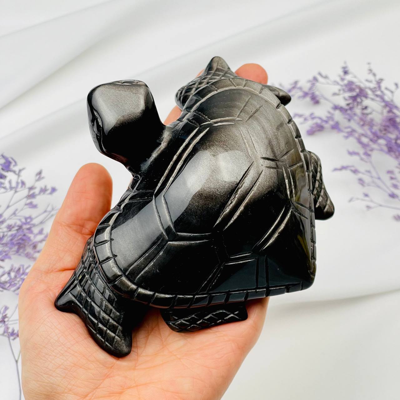 Радуга Самоцветов Фигурка резная "Черепаха" из серебристого Обсидиана