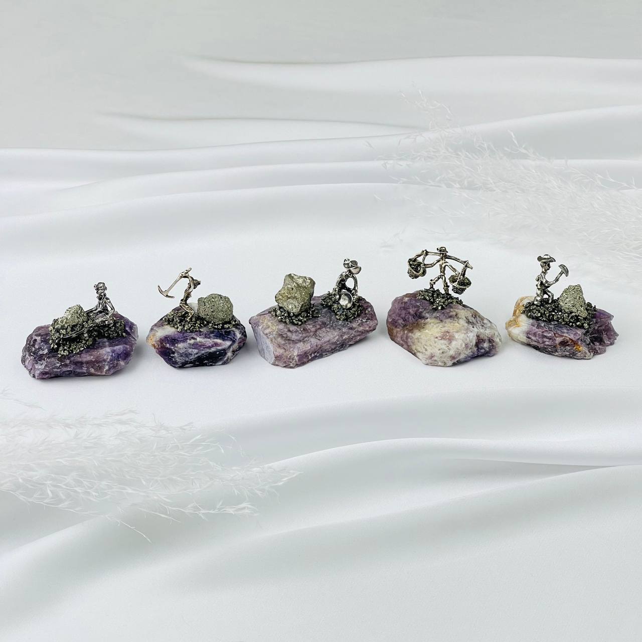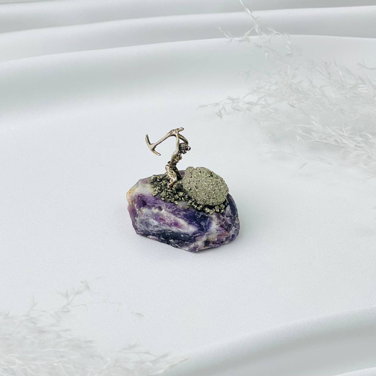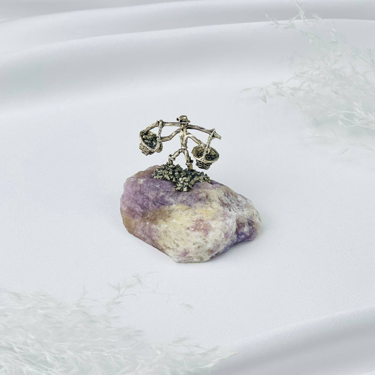 Радуга Самоцветов Фигурка Старатель на Аметисте с Пиритом