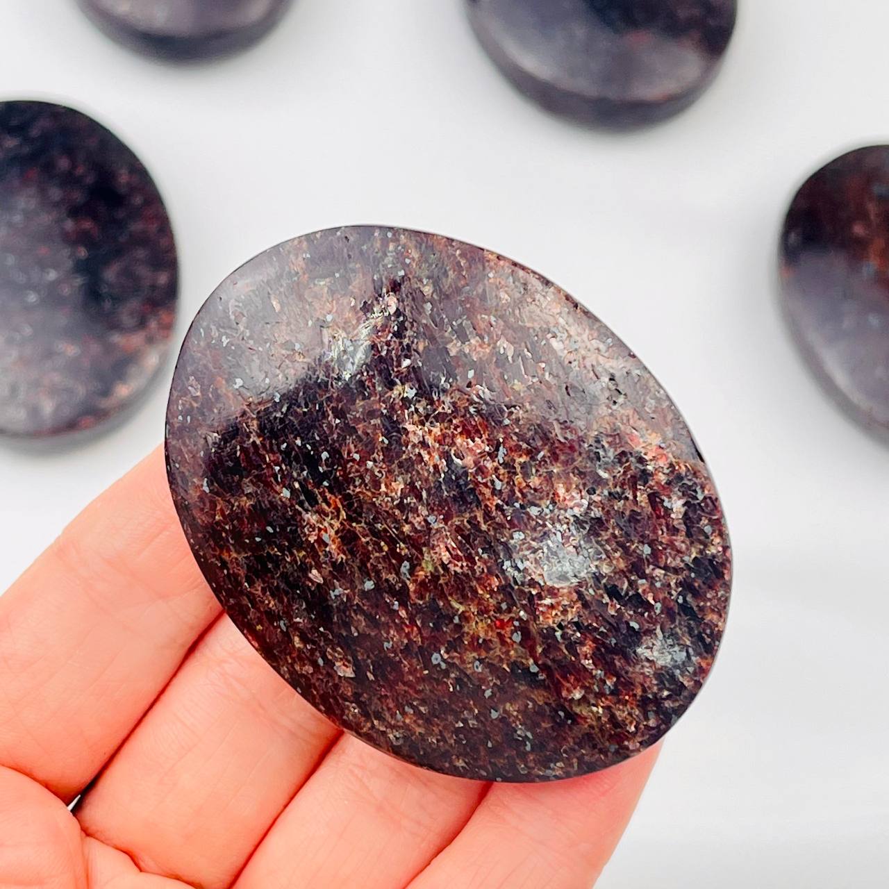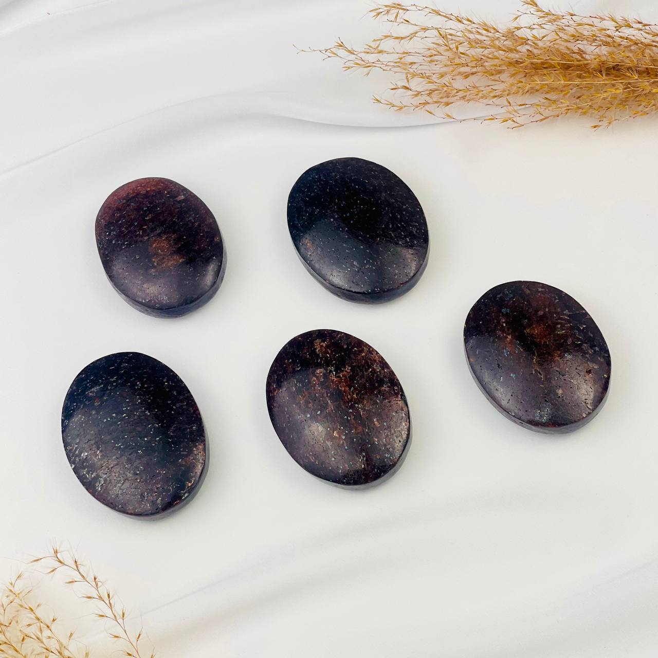 Цвет камня: Гранатовый Месторожде..показатьние: Танзания Камень: Рубеллан Поверхность: Гладкий Размер: 45х60 ммние: Танзания