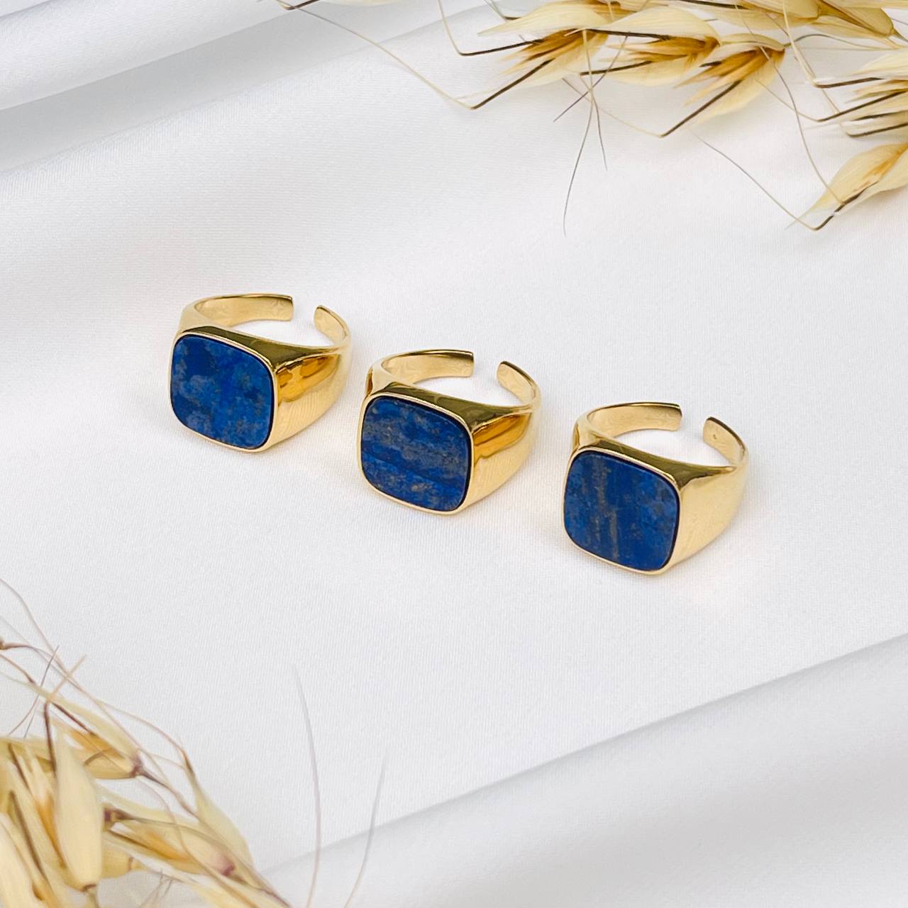 Радуга Самоцветов Кольцо регулируемое из хирургической стали с Лазуритом