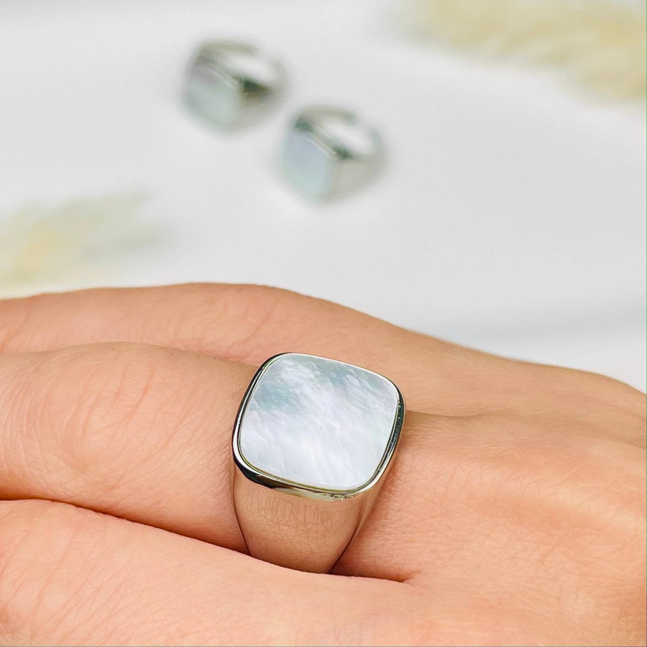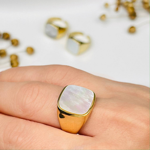 Радуга Самоцветов Кольцо регулируемое из хирургической стали с Перламутром