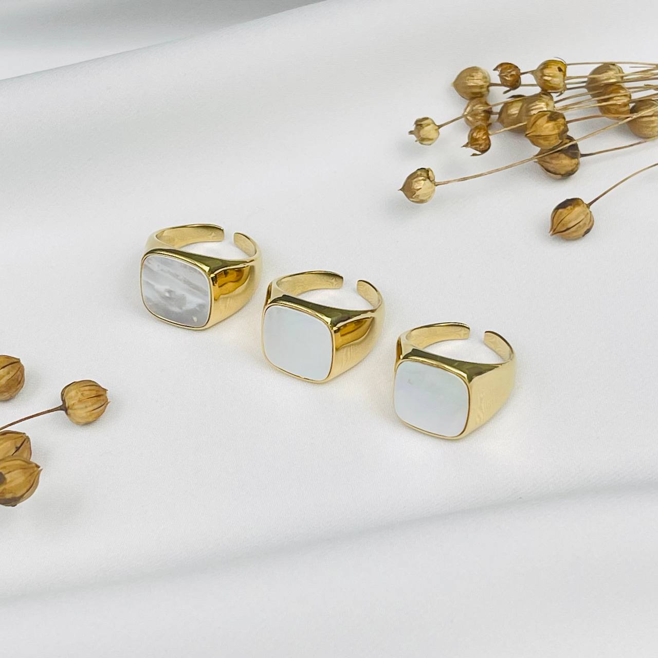 Радуга Самоцветов Кольцо регулируемое из хирургической стали с Перламутром