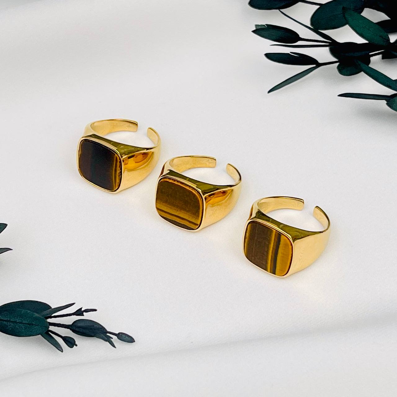 Радуга Самоцветов Кольцо регулируемое из хирургической стали с Тигровым глазом