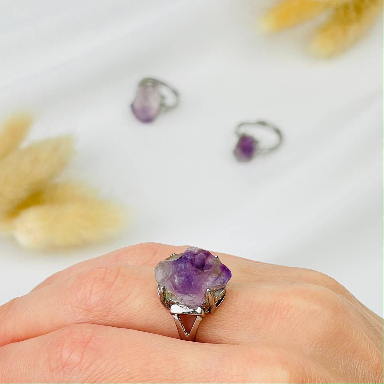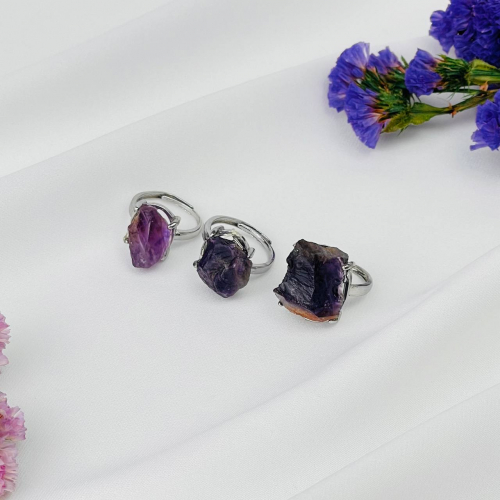 Радуга Самоцветов Кольцо регулируемое из необработанного Аметиста
