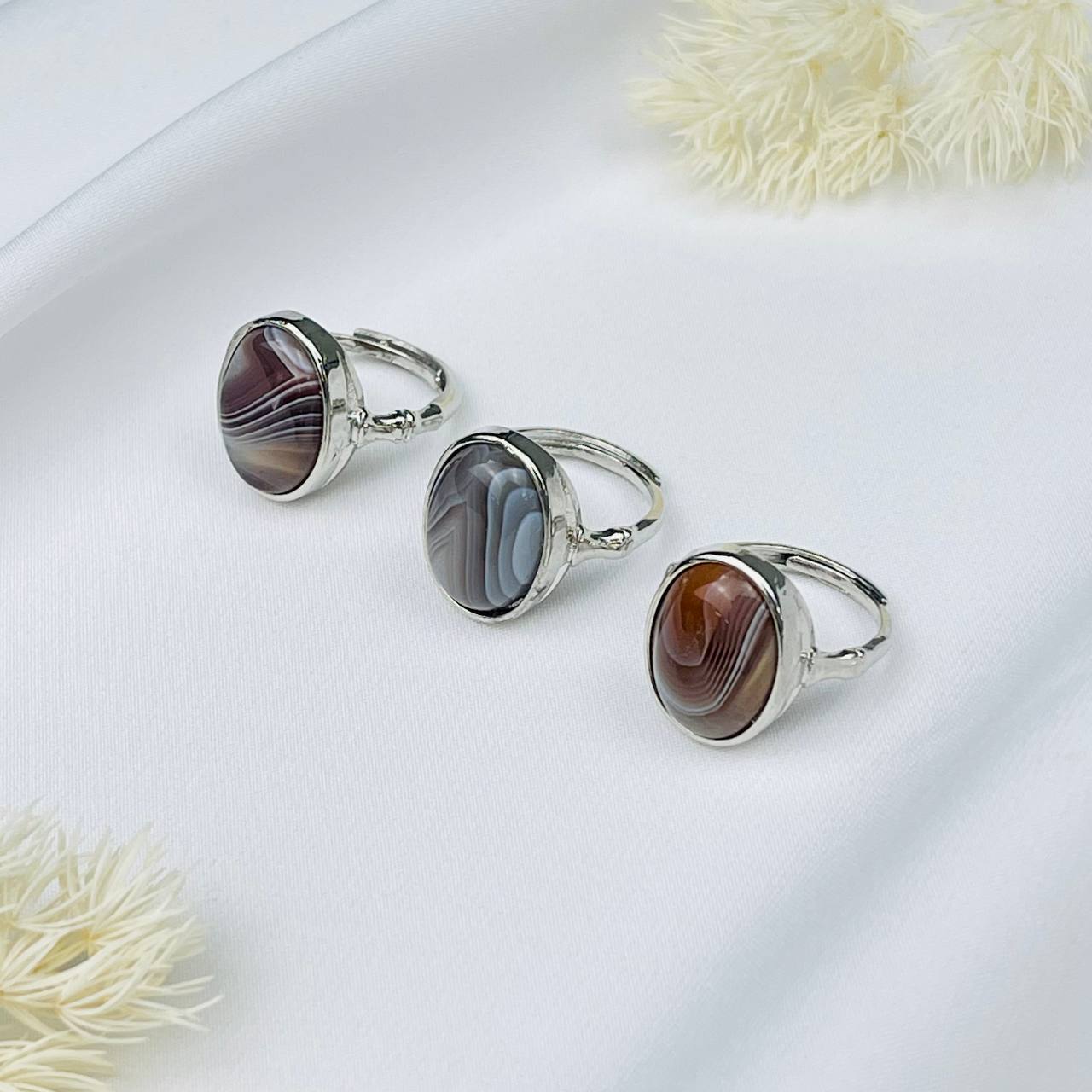 Радуга Самоцветов Кольцо регулируемое с камнем Агат