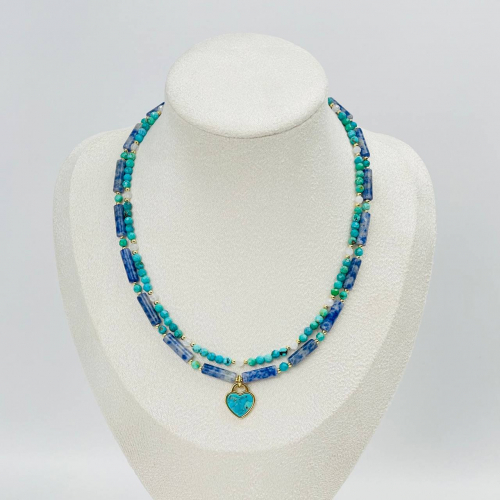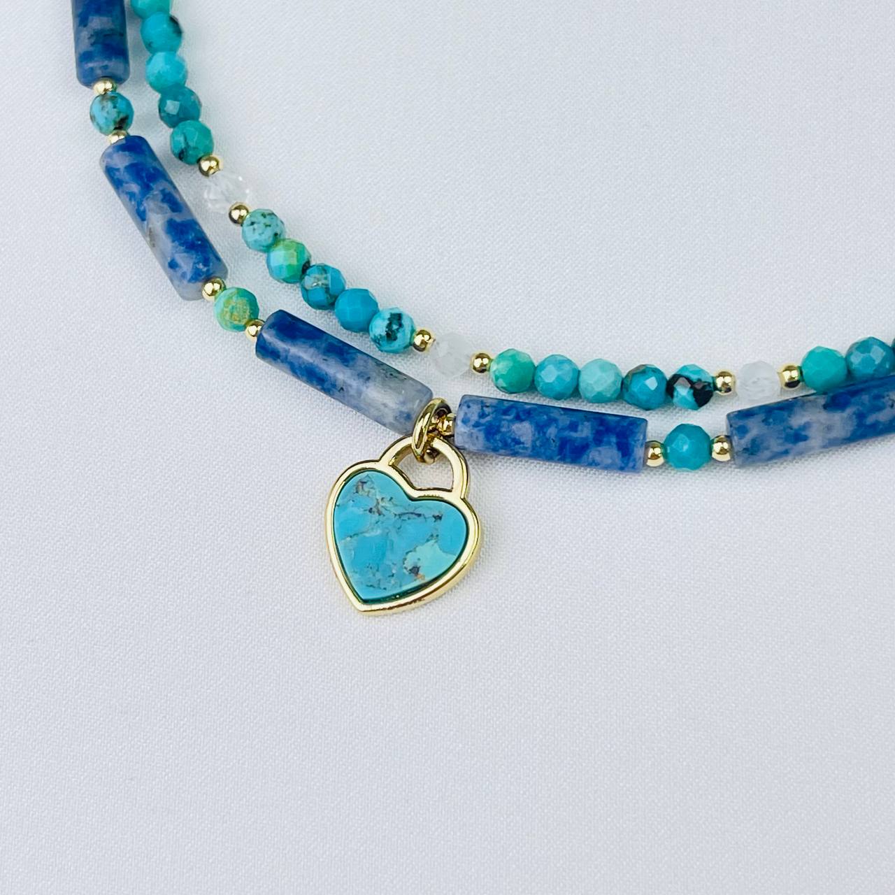 Радуга Самоцветов Колье двойное из Бирюзы, Содалита и Лунного камня