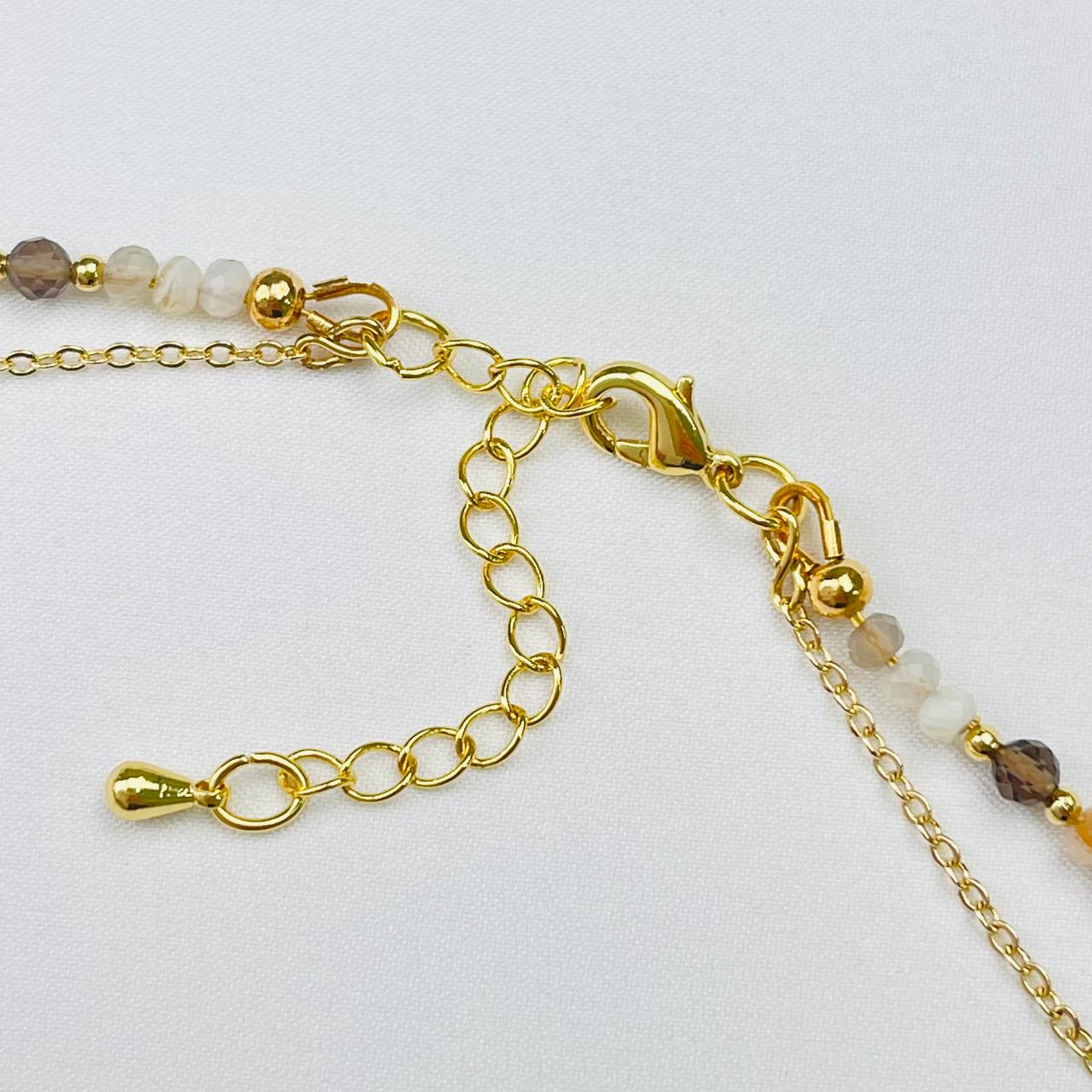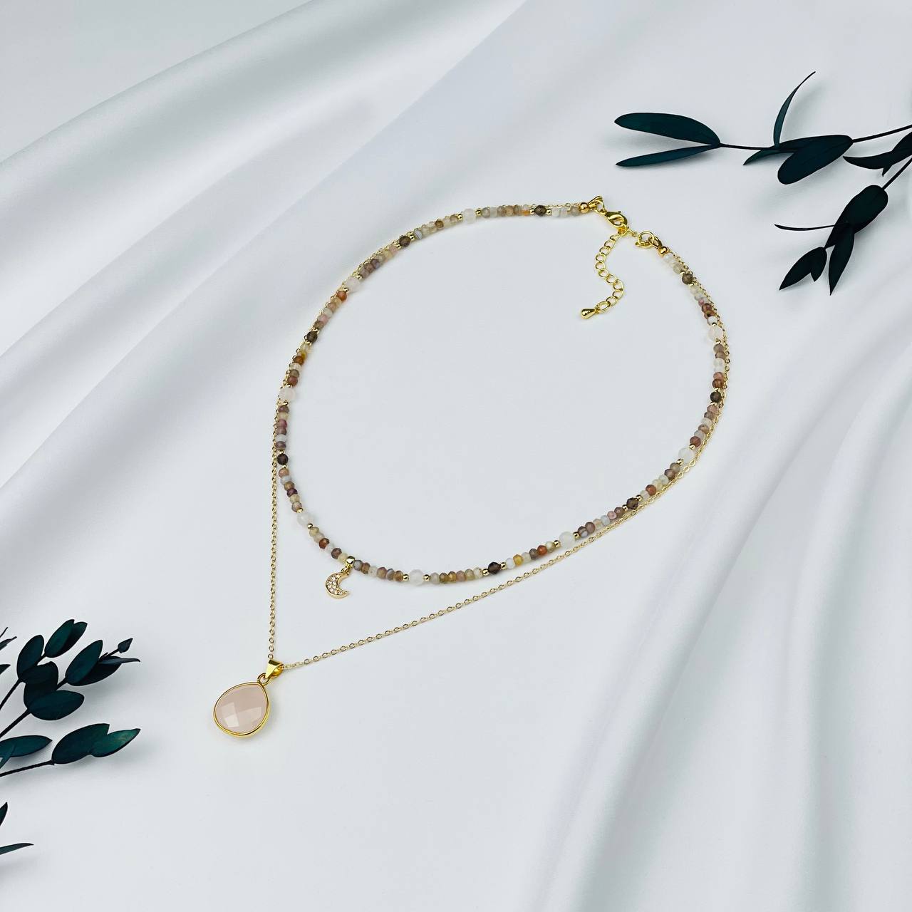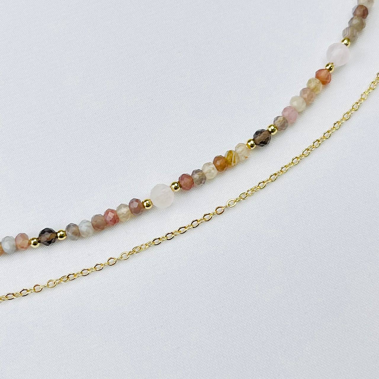 Радуга Самоцветов Колье двойное из ботсванского Агата и Розового кварца