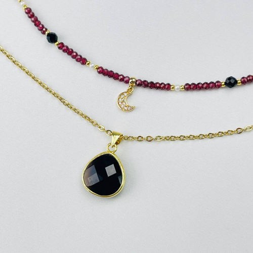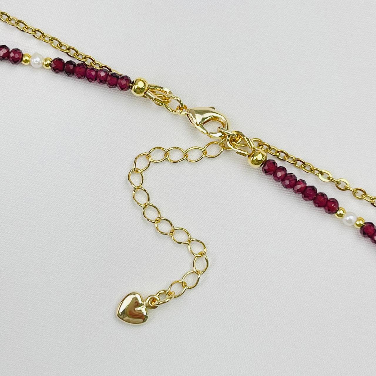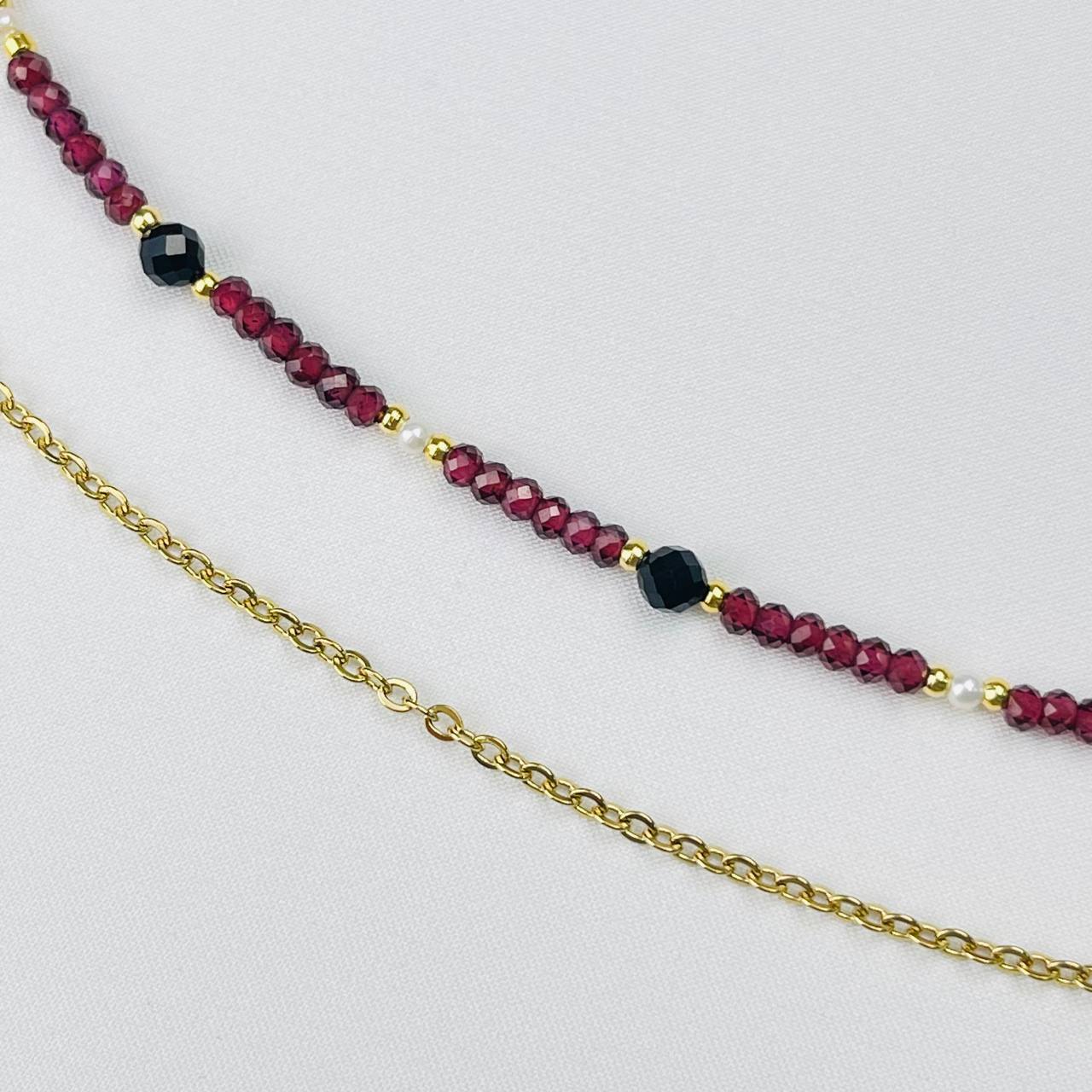 Радуга Самоцветов Колье двойное из Граната, Жемчуга, Шпинели и Агата