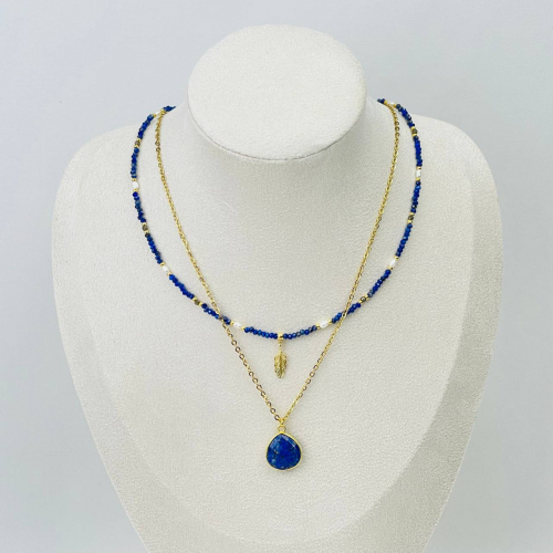 Радуга Самоцветов Колье двойное из Лазурита и Жемчуга