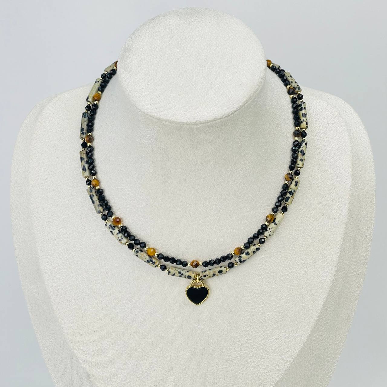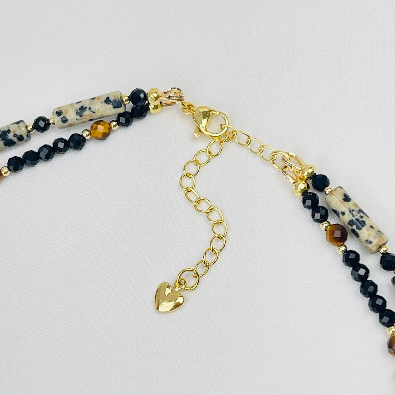 Радуга Самоцветов Колье двойное из перепелиной Яшмы, Агата и Тигрового глаза