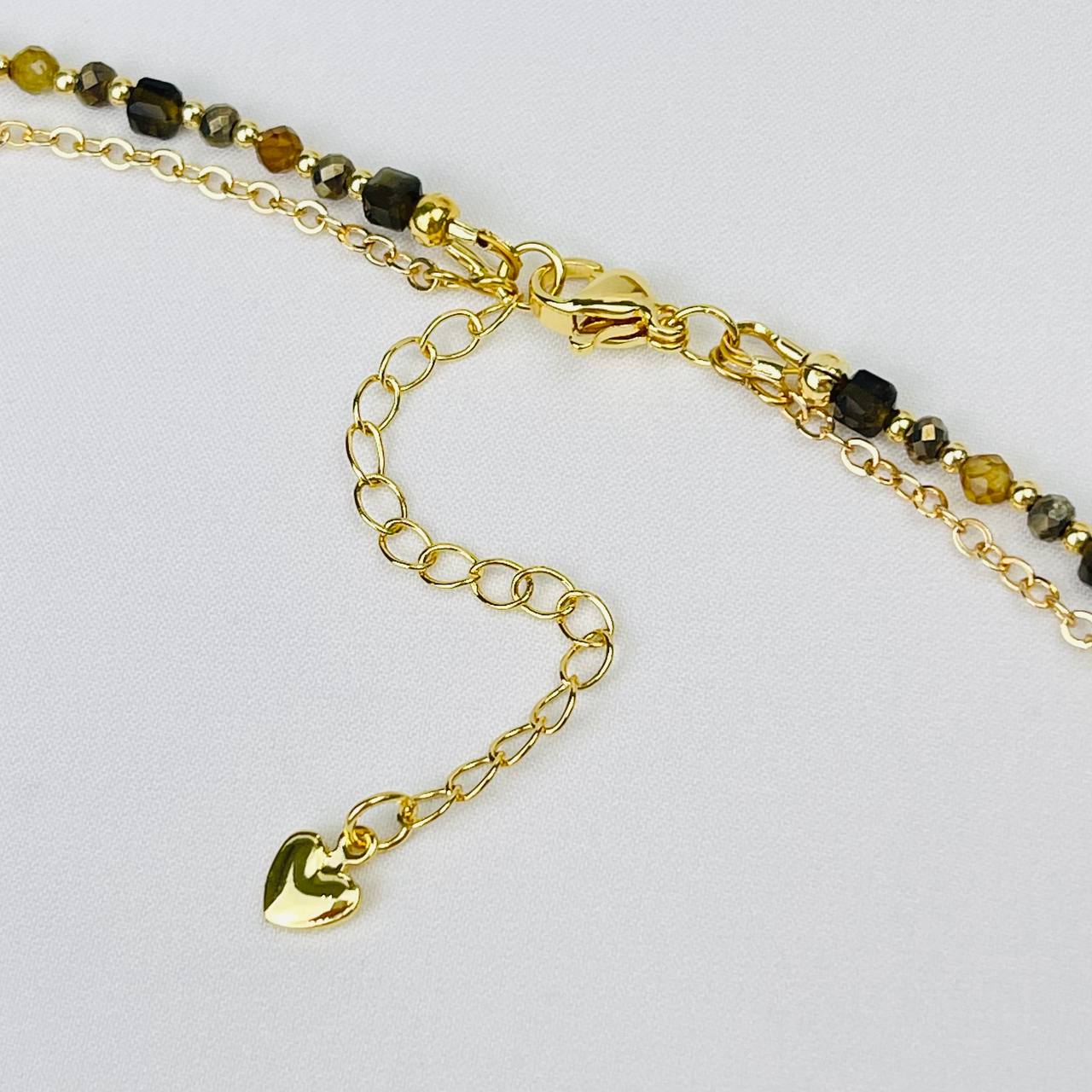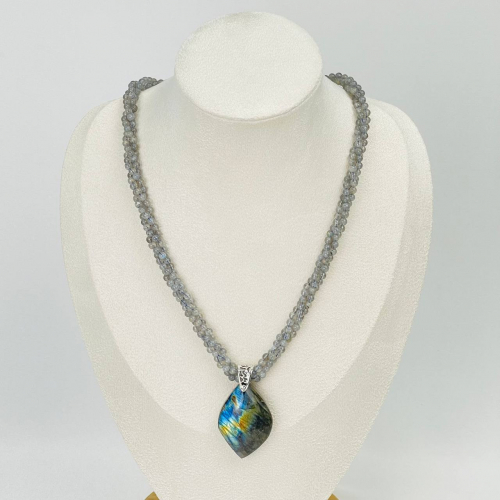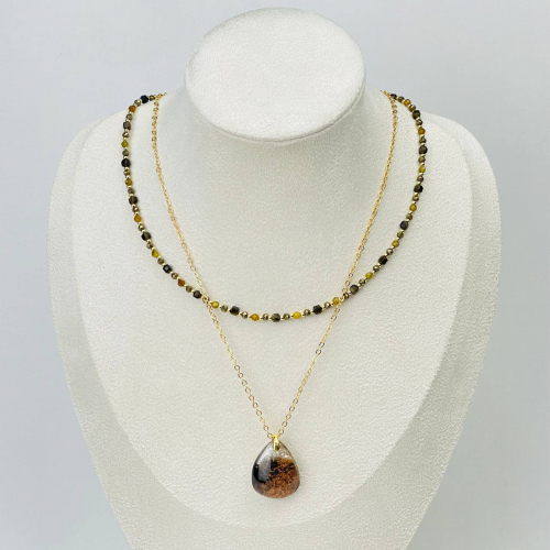Радуга Самоцветов Колье двойное из Пирита, Обсидиана и Граната с кулоном из Лодолита
