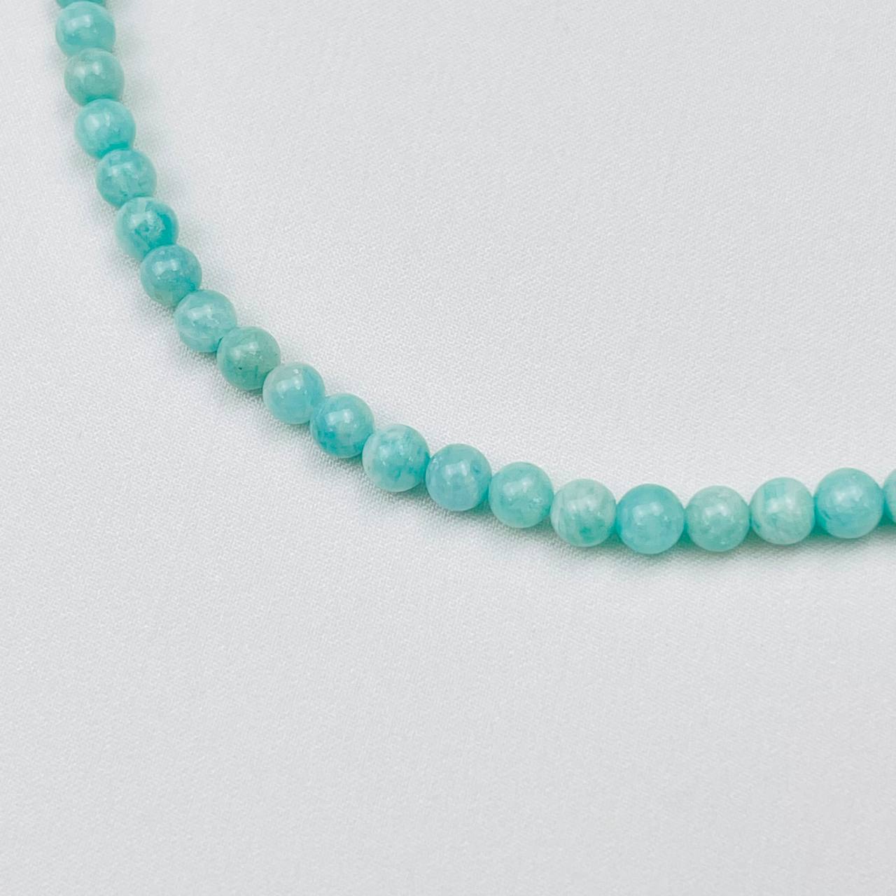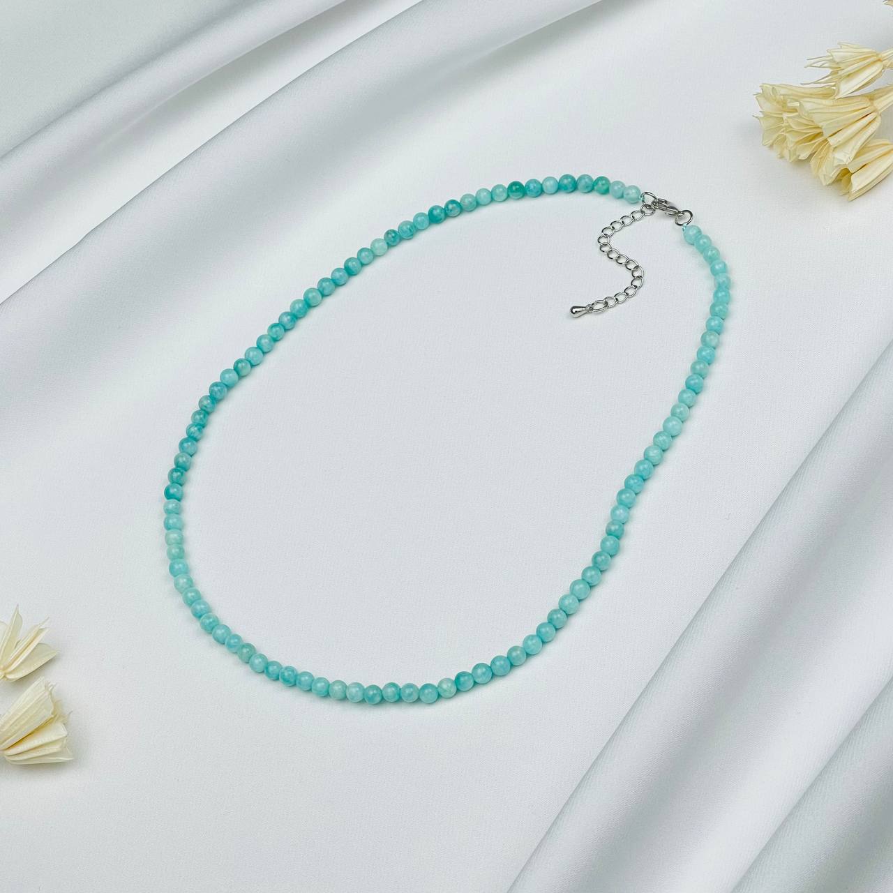 Вязка: без узелка Цвет камня: Бир..показатьюзовый Месторождение: Перу Камень: Амазонит Покрытие: Бижутерный сплав Диаметр: 4,5 мм Поверхность: Гладкий Производитель: Радуга Самоцветов (Россия) Тип замка: Карабин с цепочкойюзовый