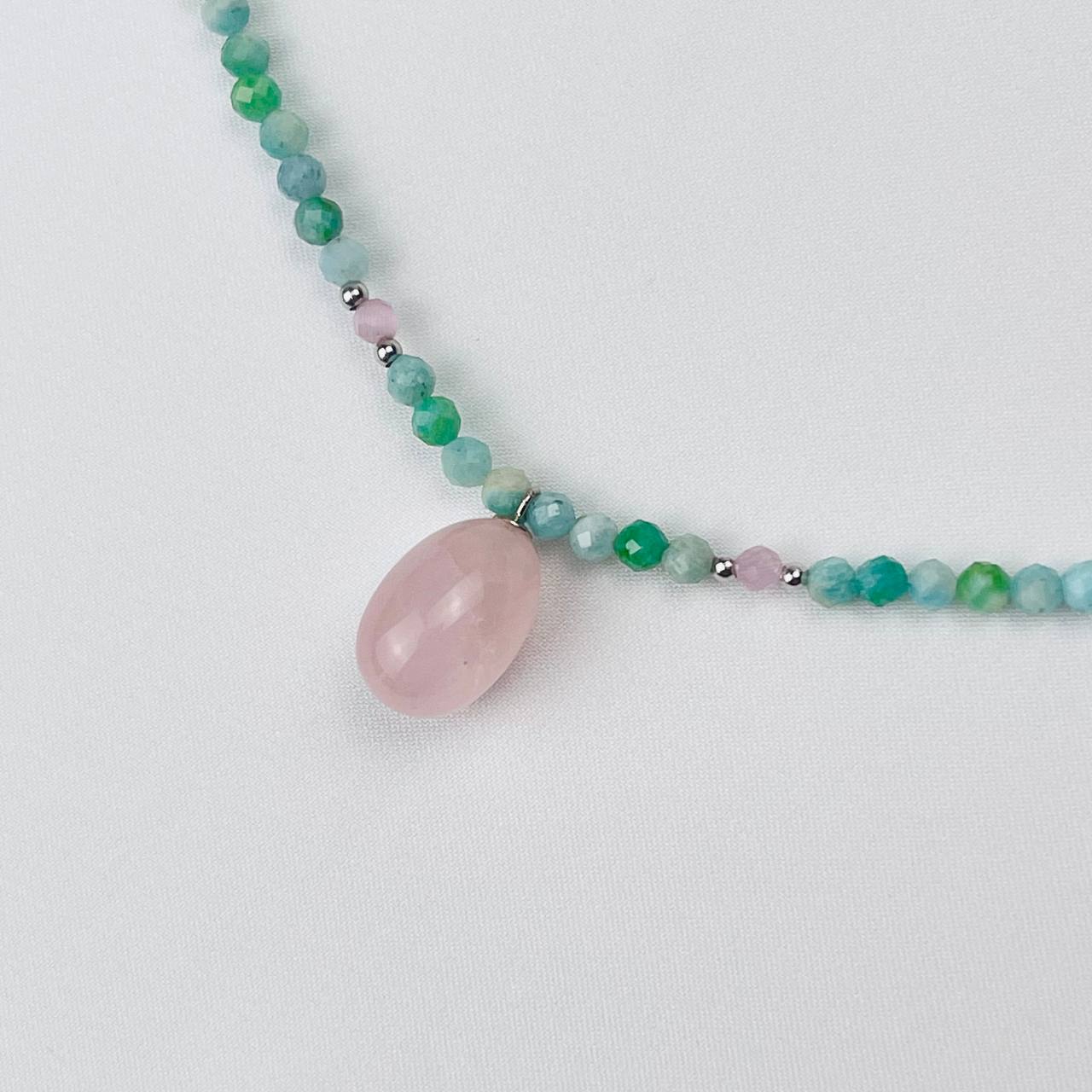 Радуга Самоцветов Колье из Амазонита и Розового кварца