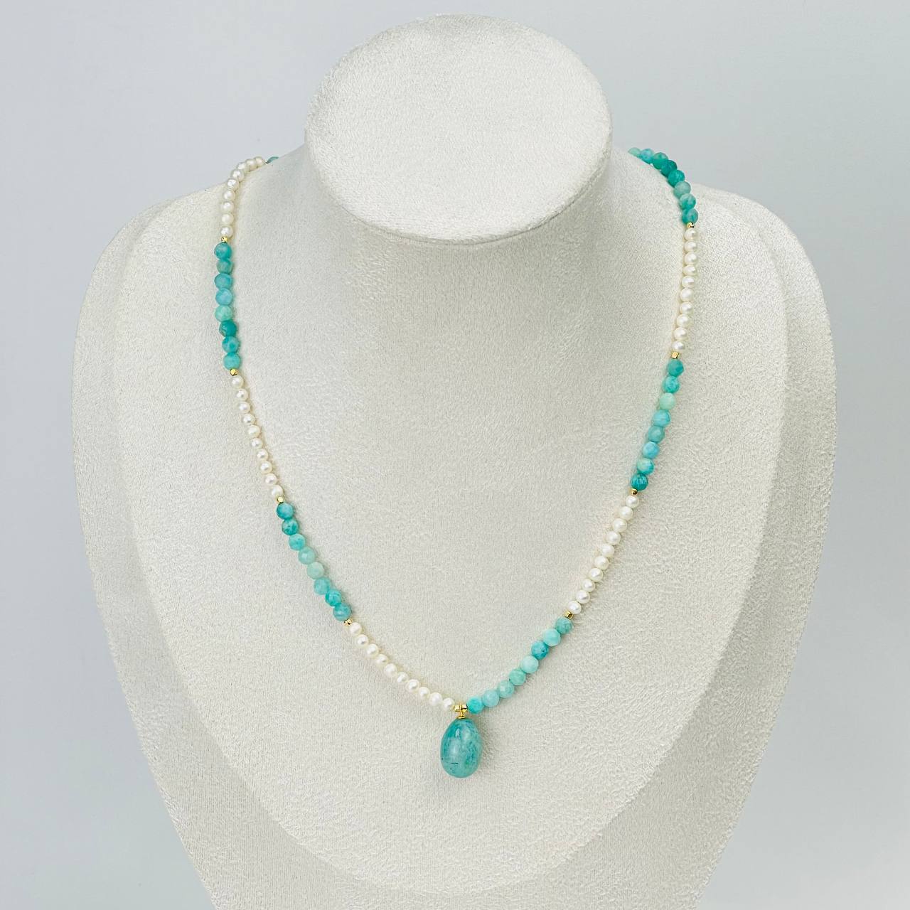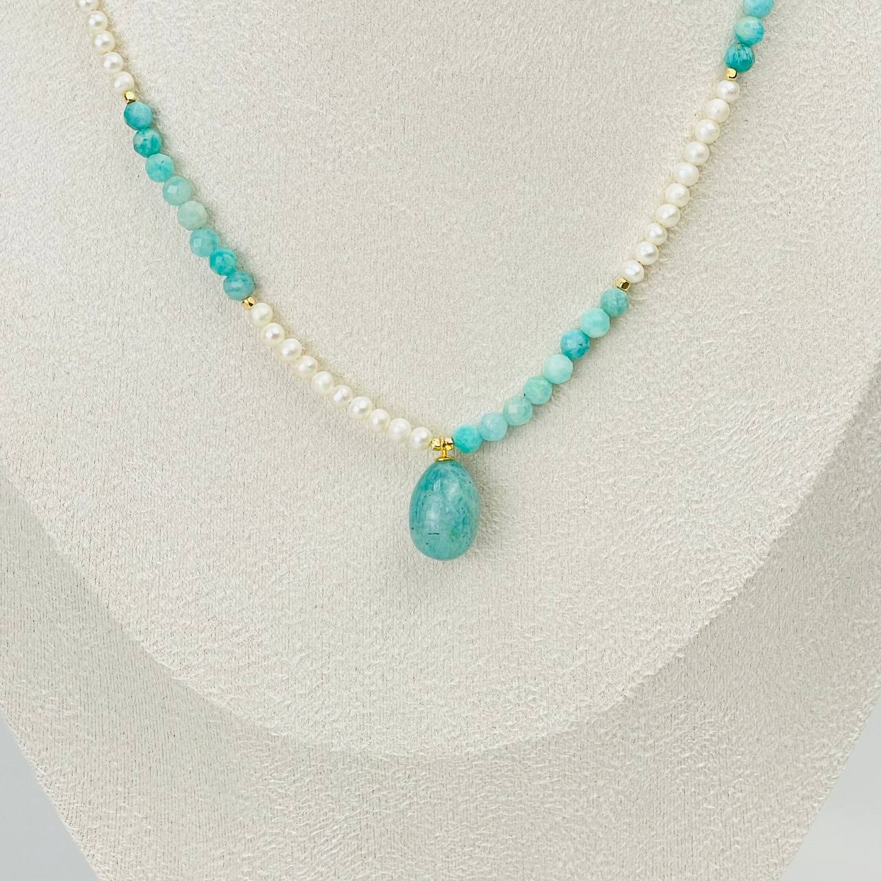 Радуга Самоцветов Колье из Амазонита и Жемчуга