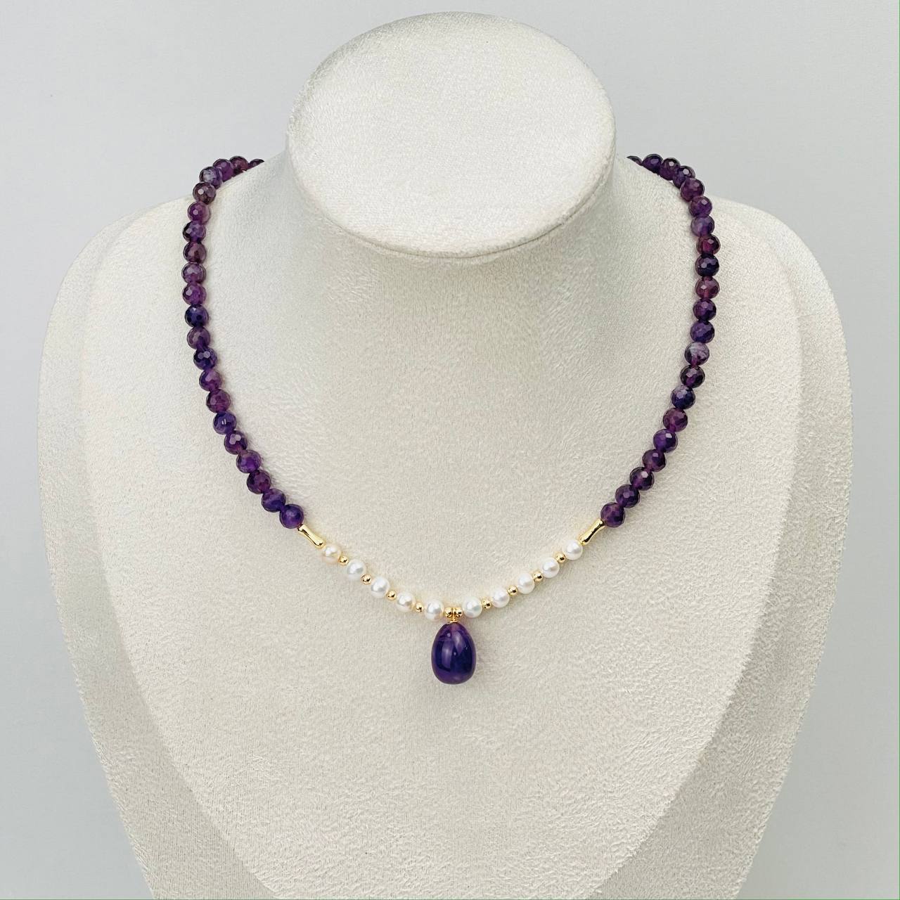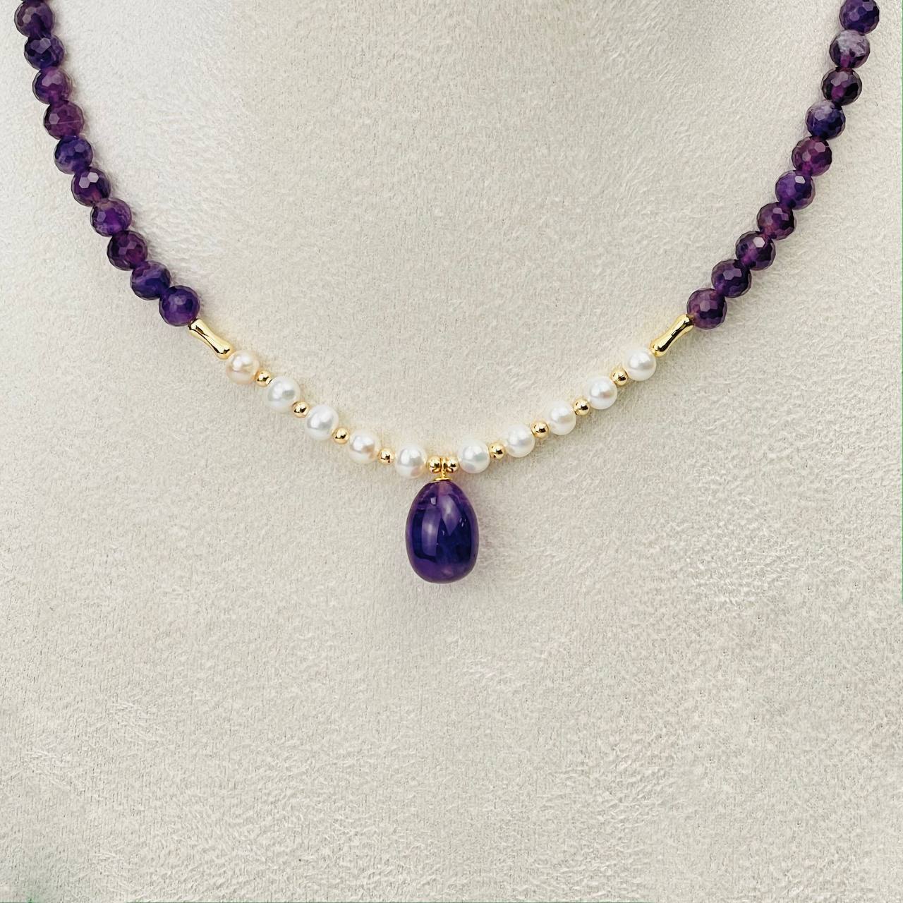 Радуга Самоцветов Колье из Аметиста и Жемчуга