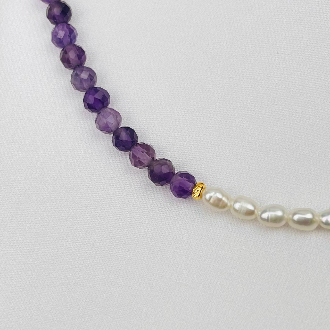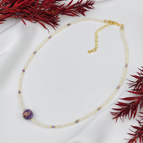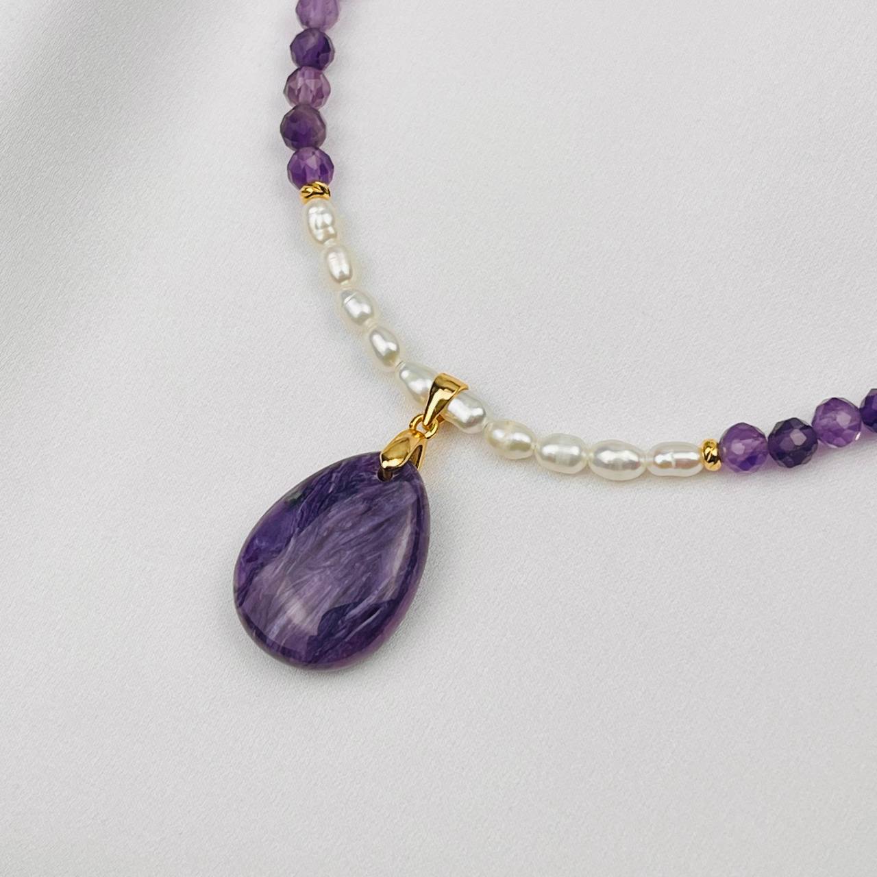 Радуга Самоцветов Колье из Аметиста и Жемчуга с кулоном из Чароита