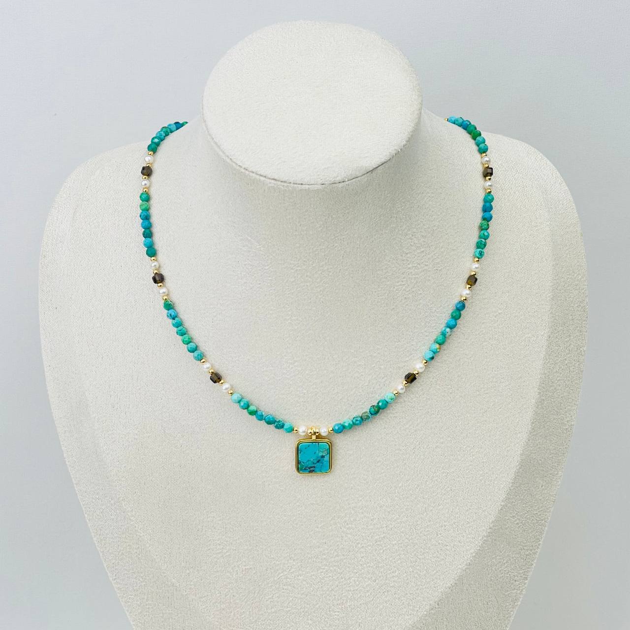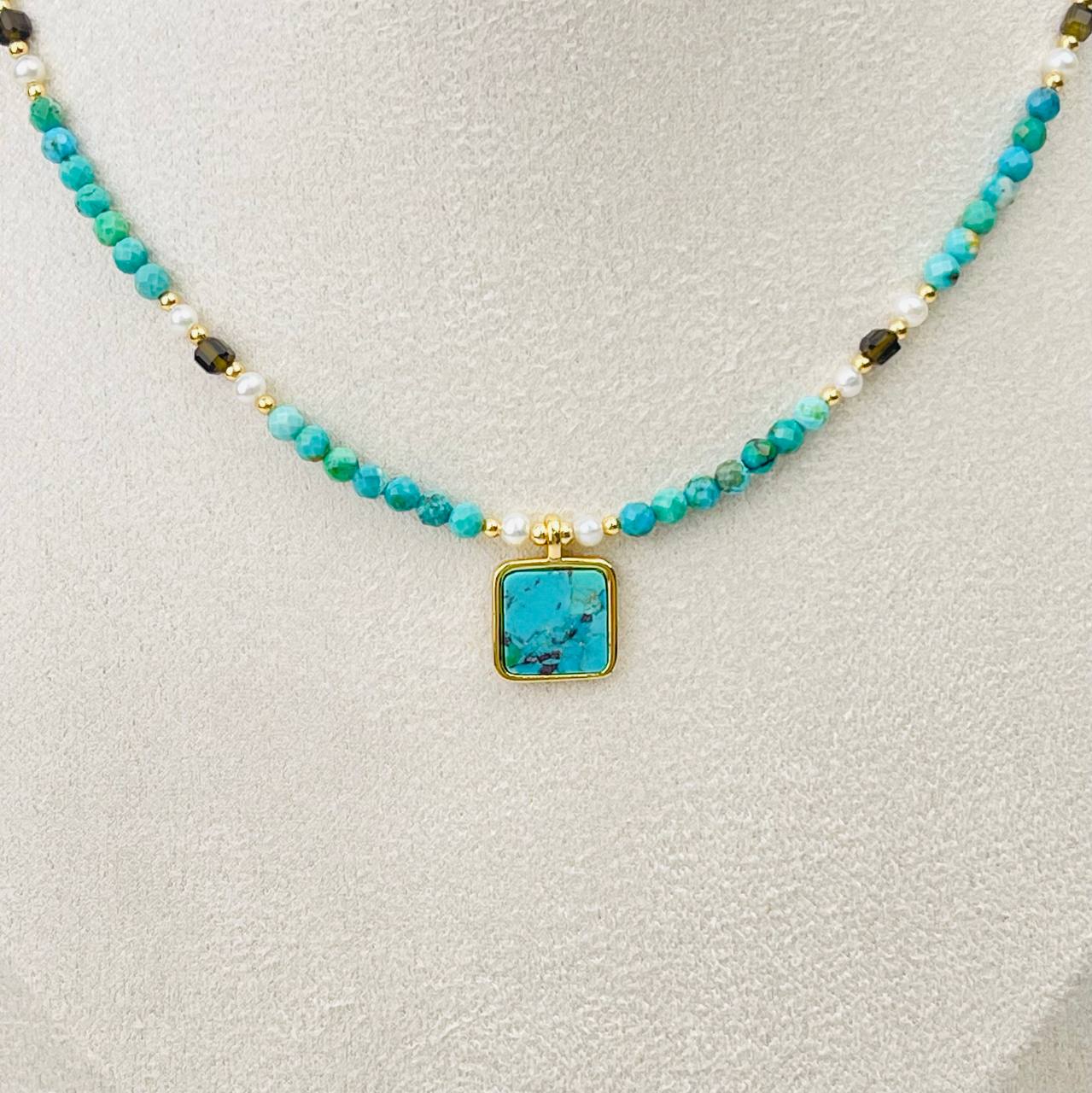Радуга Самоцветов Колье из Бирюзы, Жемчуга и Обсидиана