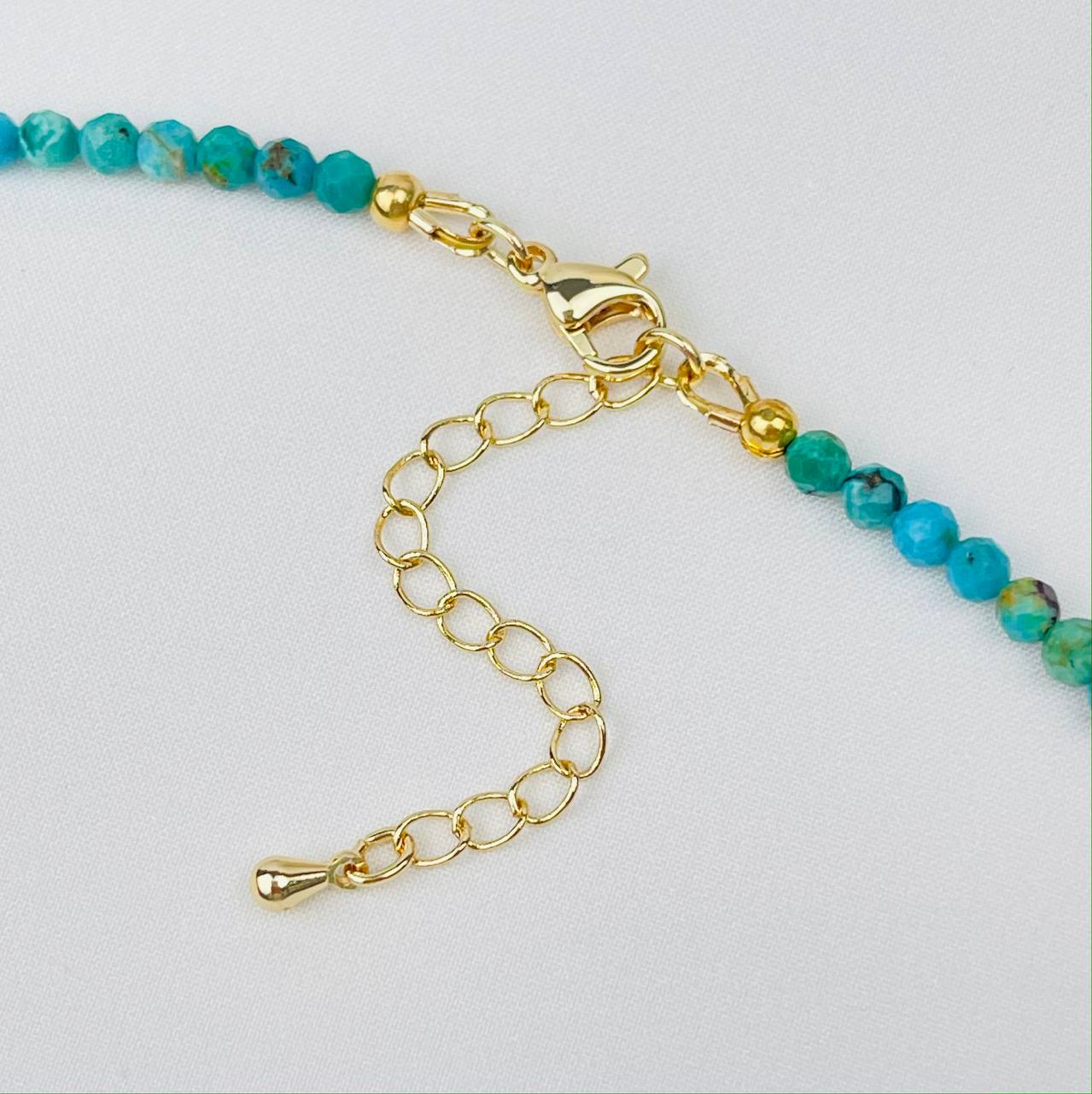 Цвет камня: Миксовый Месторождени..показатье: Хубэй Камень: Бирюза Вставка: Жемчуг Покрытие: Золото 14К Диаметр: 3,5 мм Поверхность: Граненный/Необработанный Производитель: Радуга Самоцветов (Россия) Тип замка: Карабин с цепочкойе: Хубэй