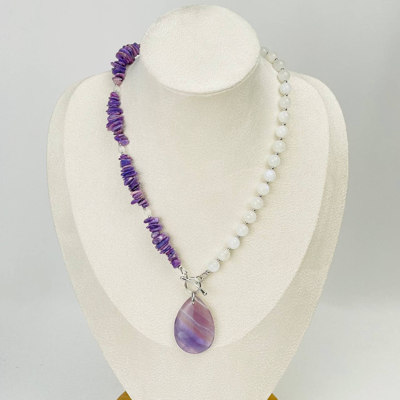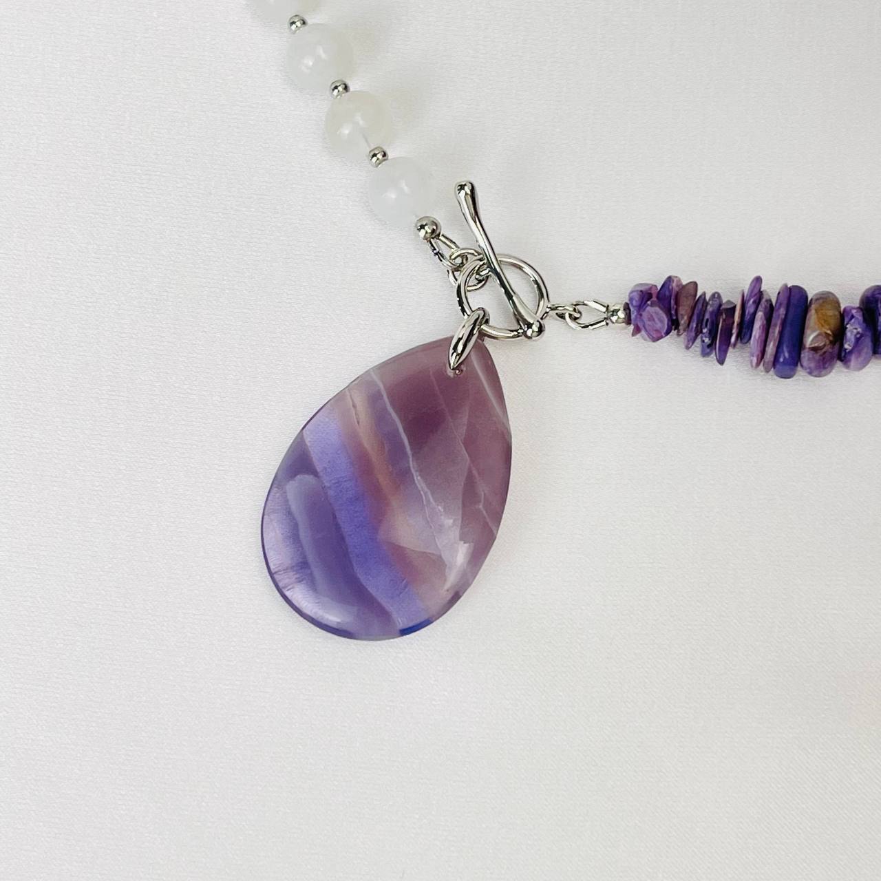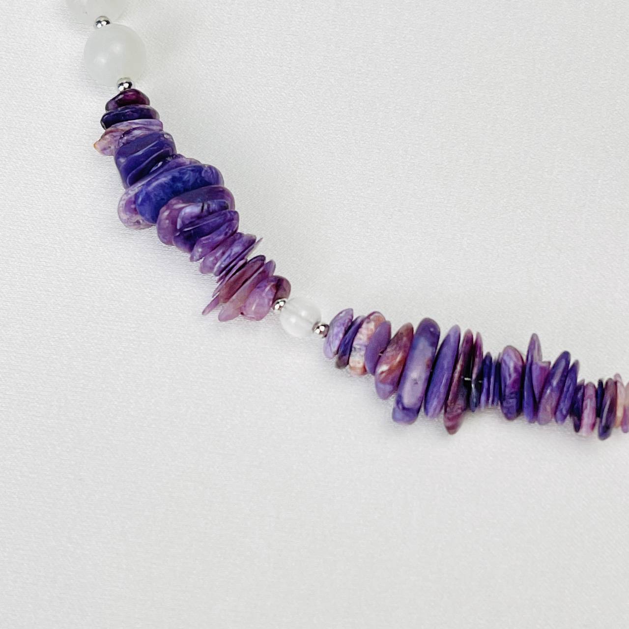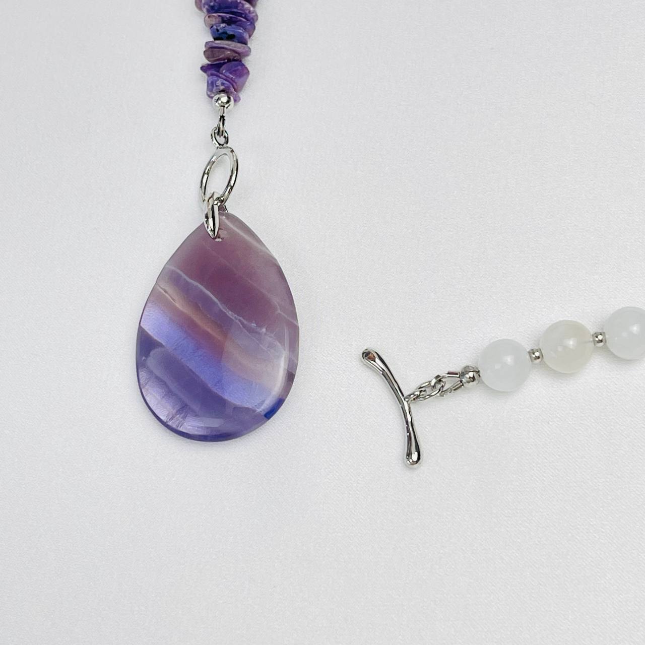 Радуга Самоцветов Колье из Чароита, Лунного кмня и Флюорита