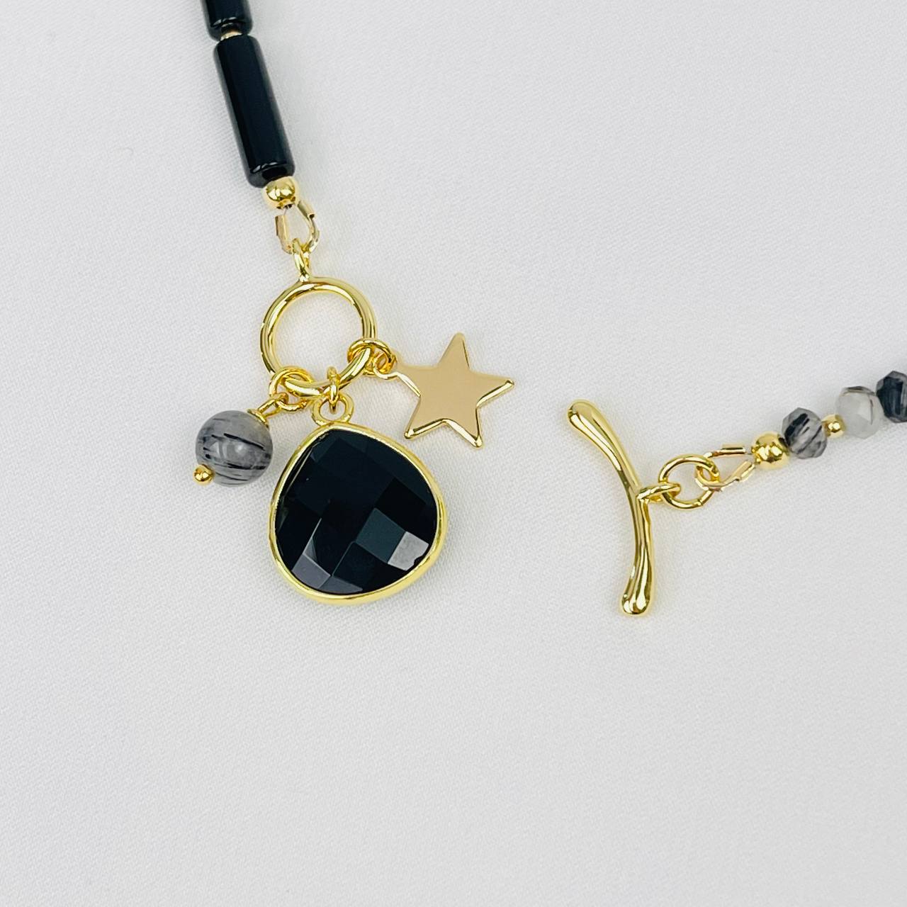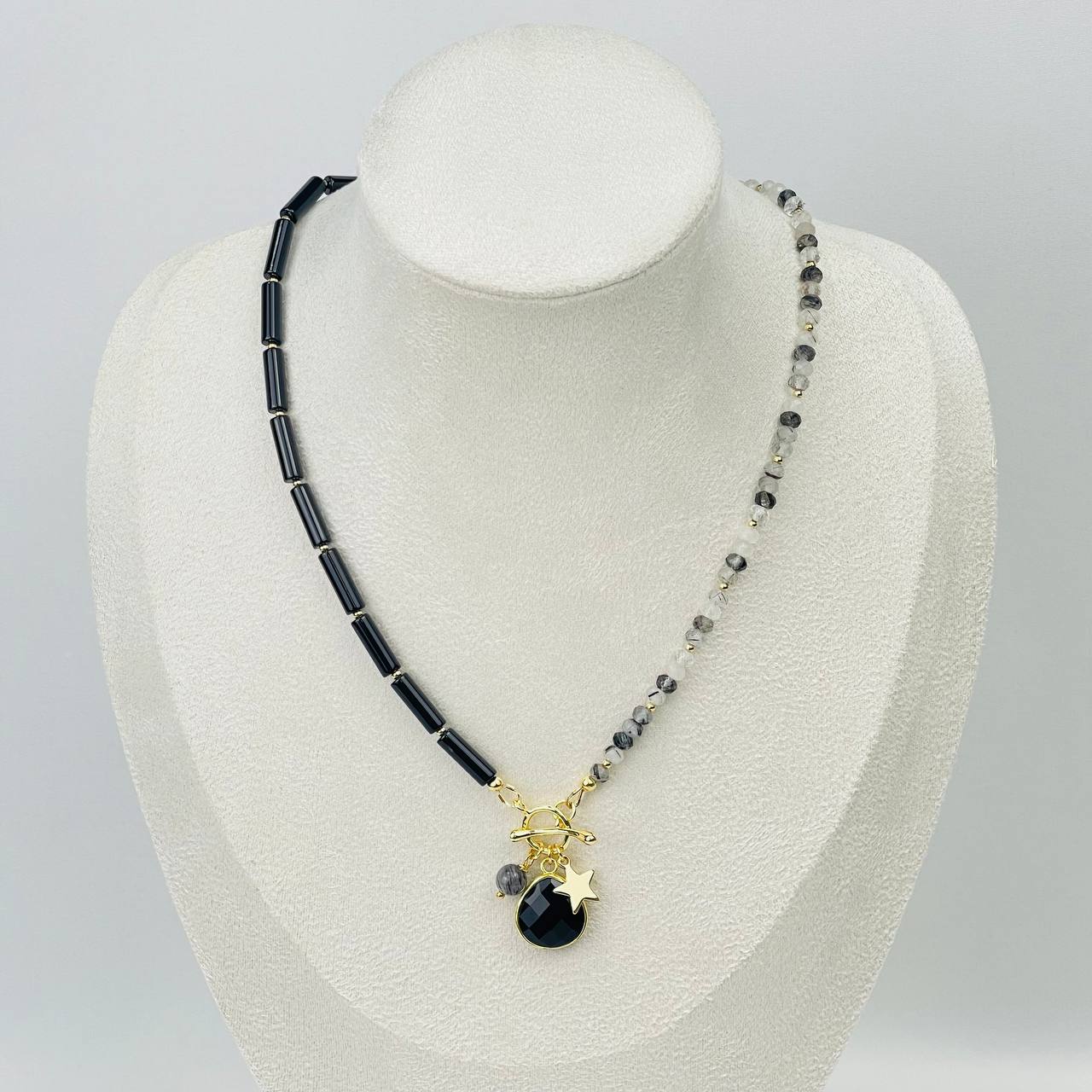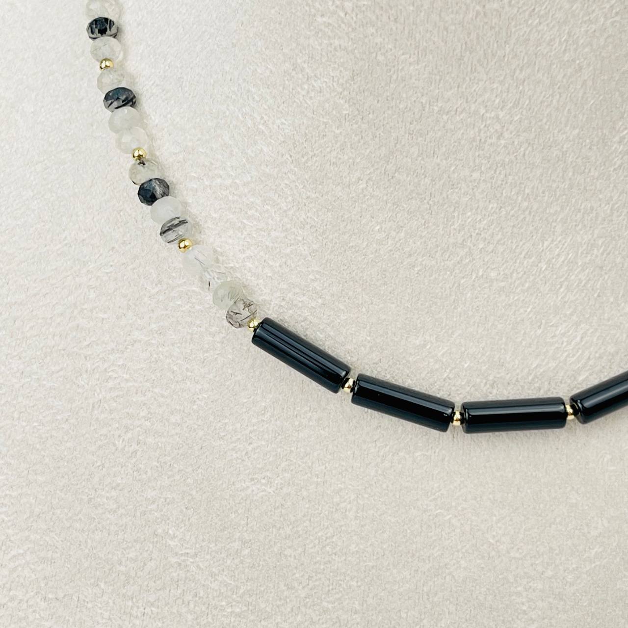 Радуга Самоцветов Колье из черного Агата и Кварца с включением Турмалина