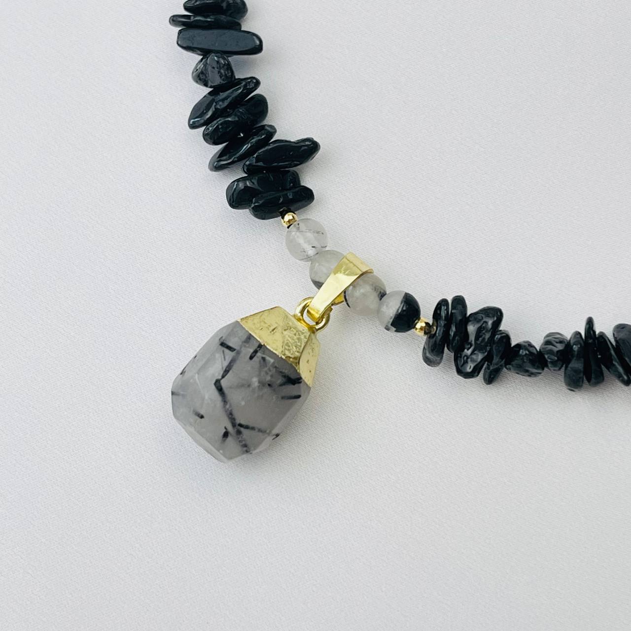 Радуга Самоцветов Колье из черного Турмалина с кулоном из Турмалинового кварца