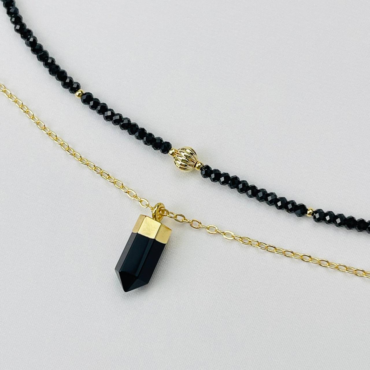 Радуга Самоцветов Колье из черной Шпинели с подвеской из Обсидиана