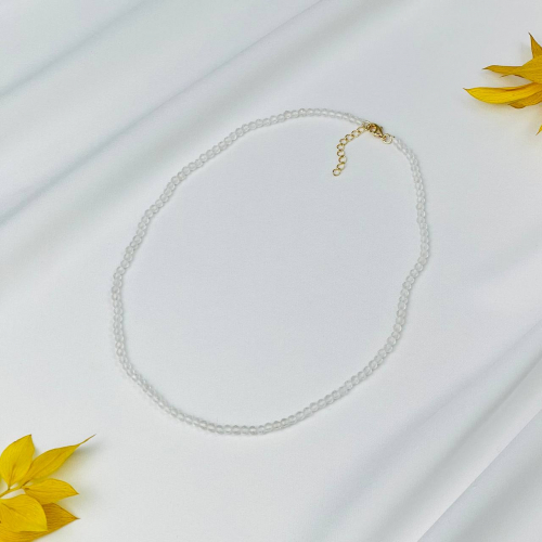 Цвет камня: Прозрачный Месторожде..показатьние: Бразилия Камень: Горный хрусталь Покрытие: Золото 14К Диаметр: 3 мм Поверхность: Граненый Производитель: Радуга Самоцветов (Россия) Тип замка: Карабин с цепочкойние: Бразилия
