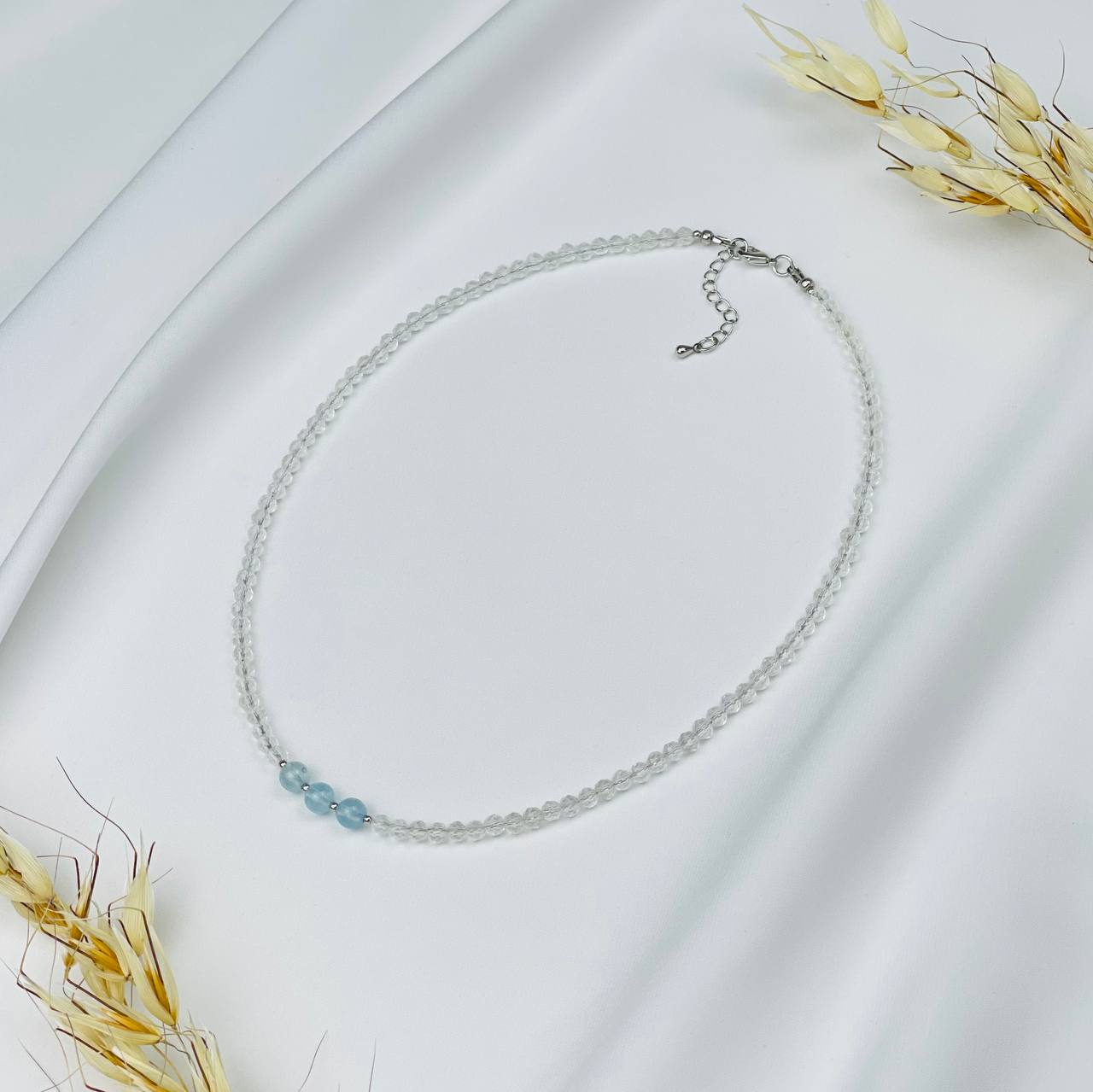 Радуга Самоцветов Колье из Горного Хрусталя и Аквамарина